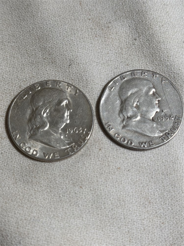 A pair of Franklin silver half dollars 1963 very nice shape 1952 also very very nice shape