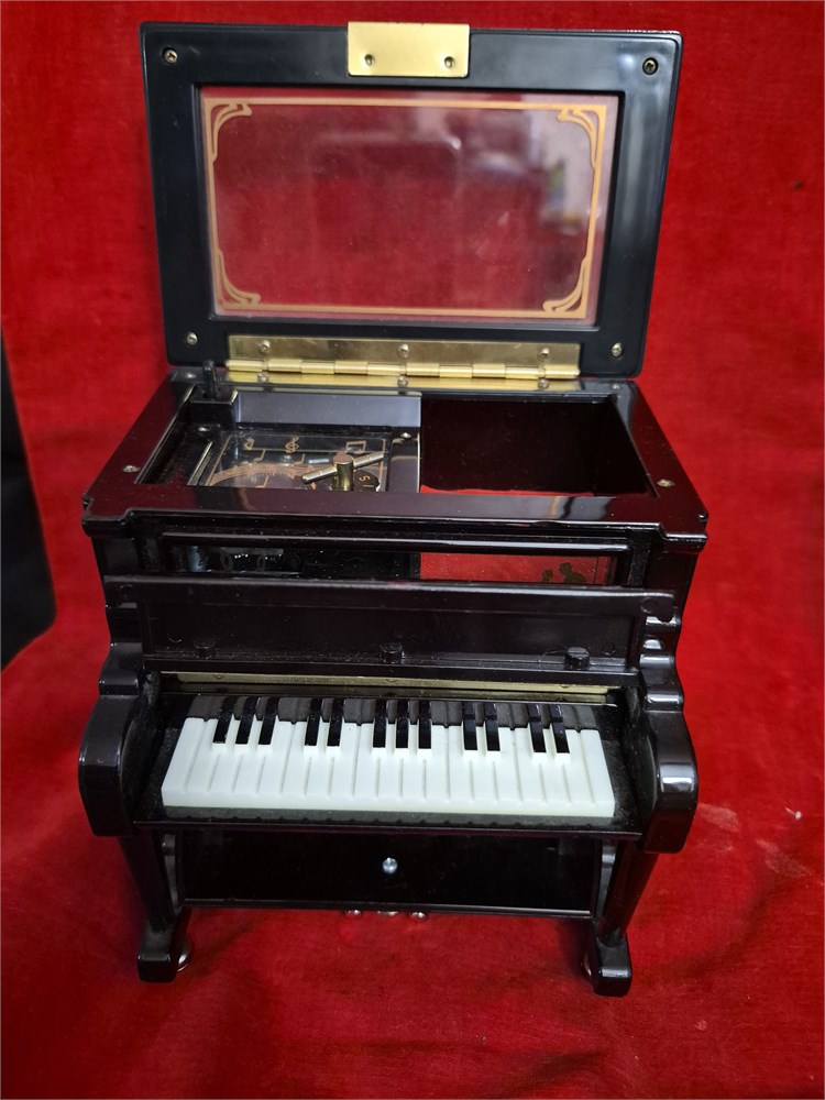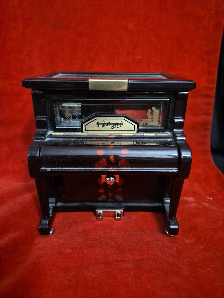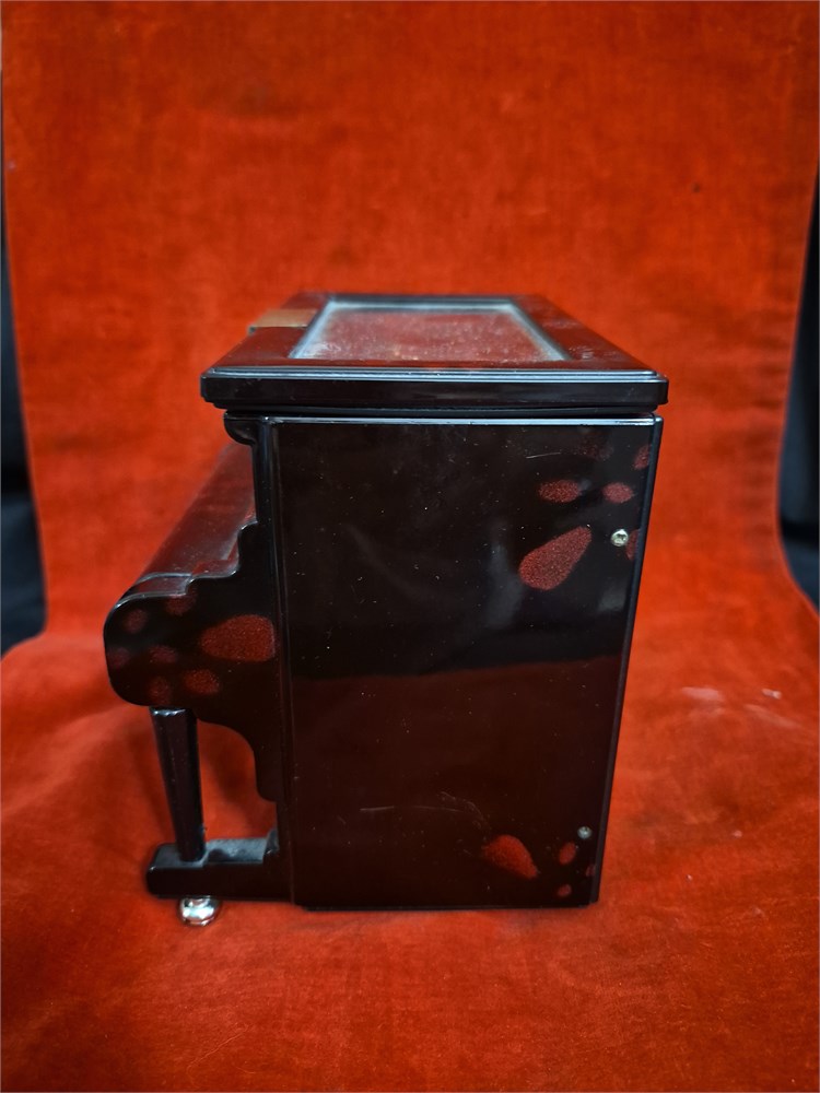 Vintage Black Lacquer Kings Upright Piano Musical Jewelry Box works.
