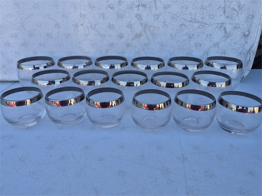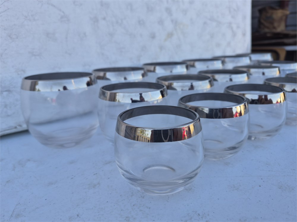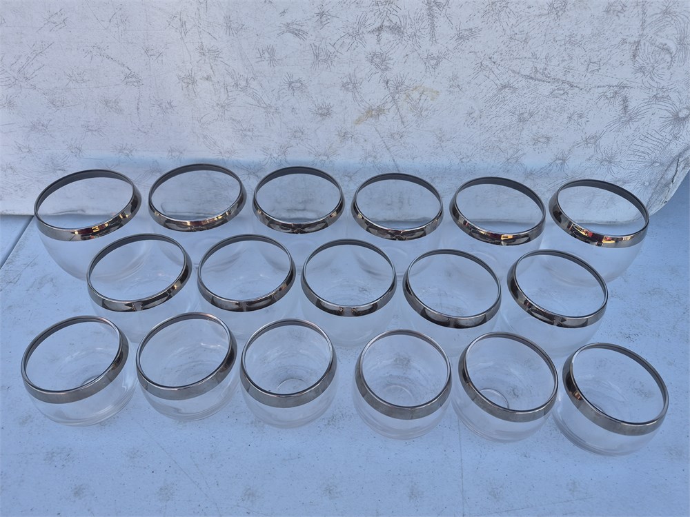 Dorothy Thorpe Silver Band Glass Roly Poly MCM BarWare Vintage. Includes 17 glasses total. 3 different sizes. 1