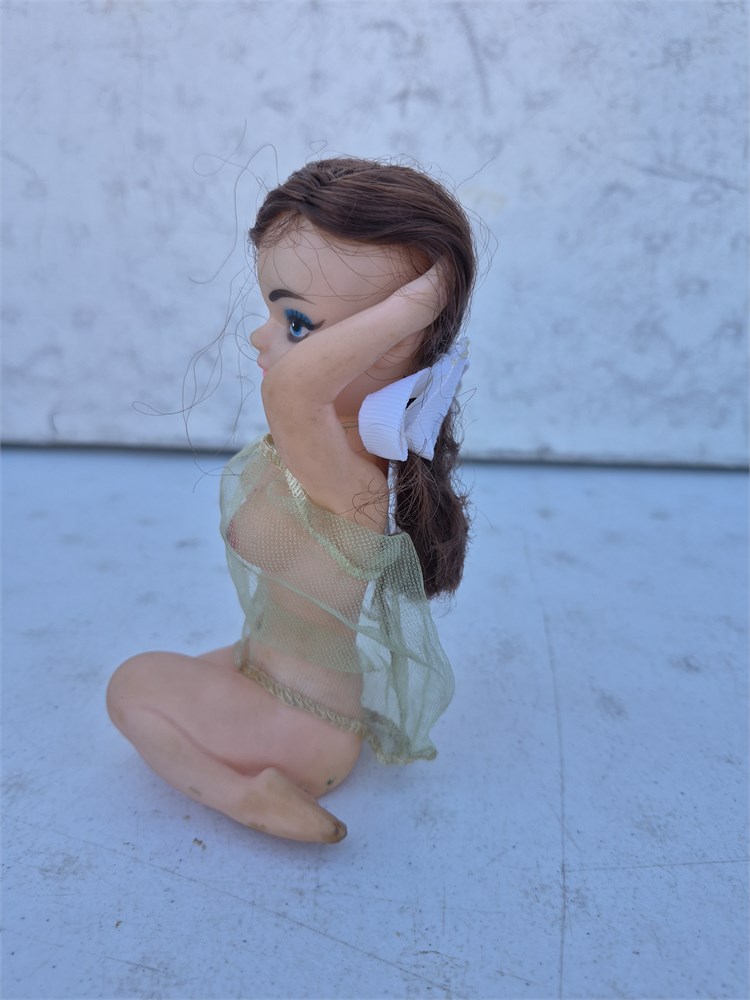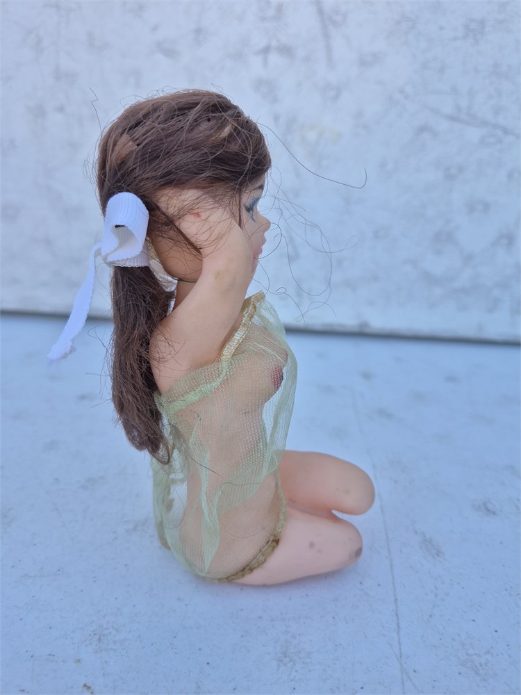 Rare Vintage Brunette 6" Pin-Up Nude Doll Sheer Dress Blue Eyes.