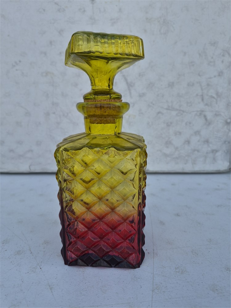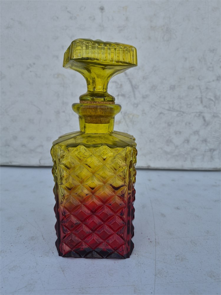 VINTAGE VIKING AMBERINA DECANTER Glass ombre red yellow diamond cut pattern (LB
