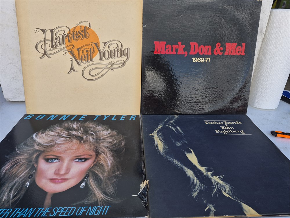 Lot of 4 record albums. Includes Neil Young, Mark Don & Mel, Bonnie Tyler and Dan Fogelberg.