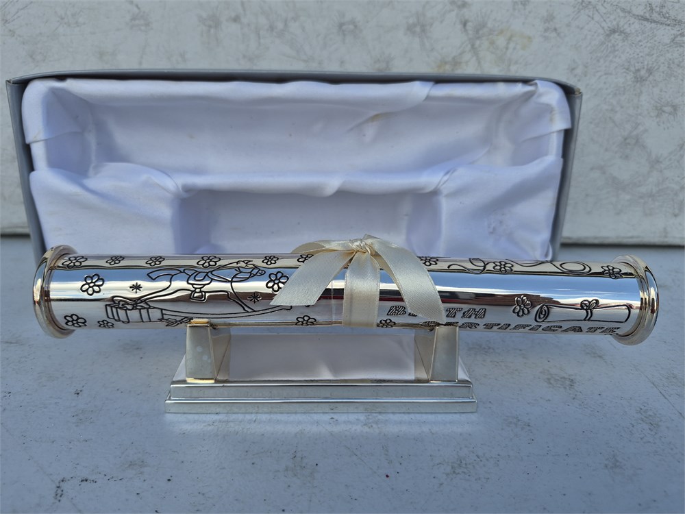 Birth Certificate Holder and Base Original Box Baby Gift Treasures with Scroll (