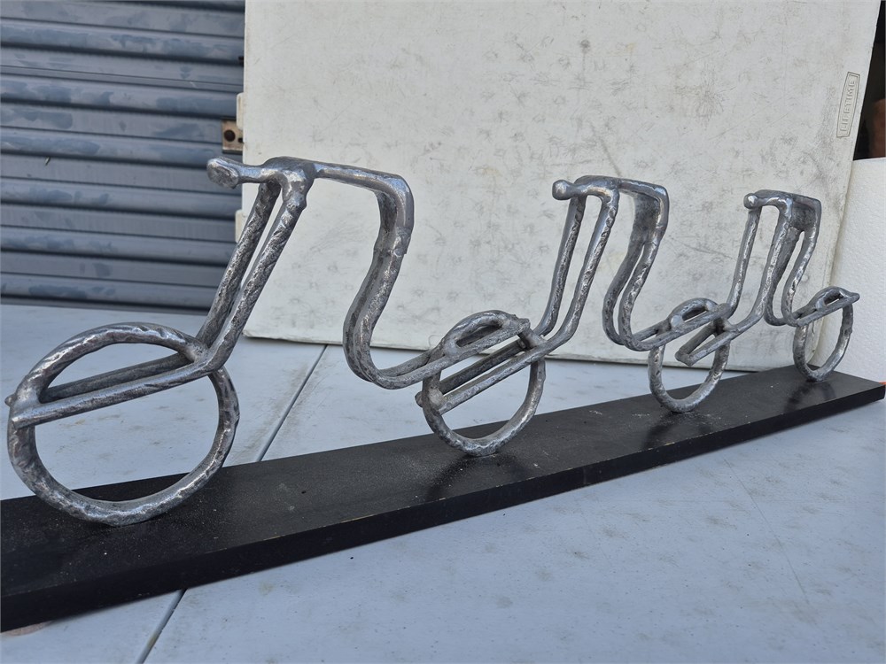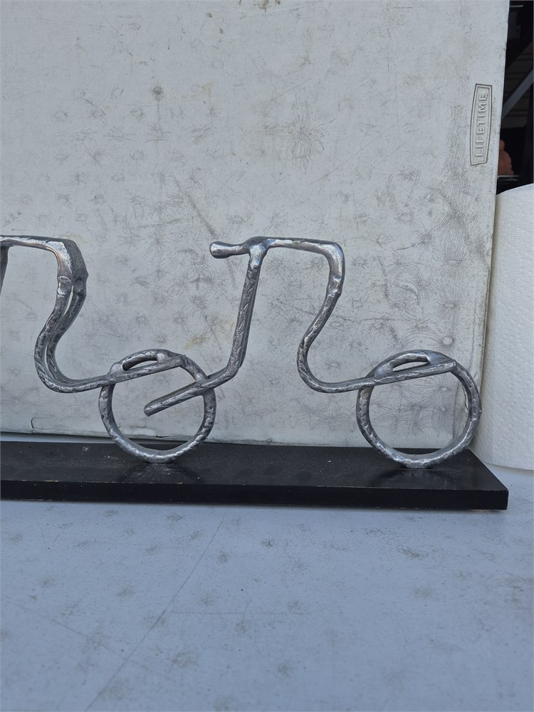 Mid Century Modern Cast Aluminum Bicycle Bike Racing Sculpture. Measures 34" long by 9.5" high.