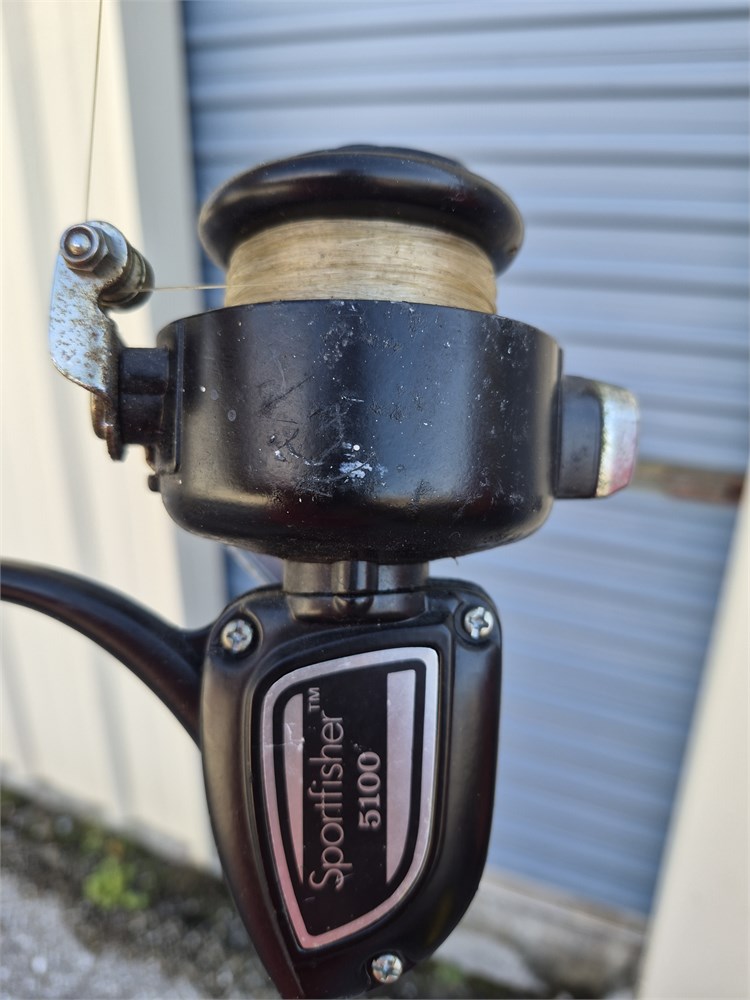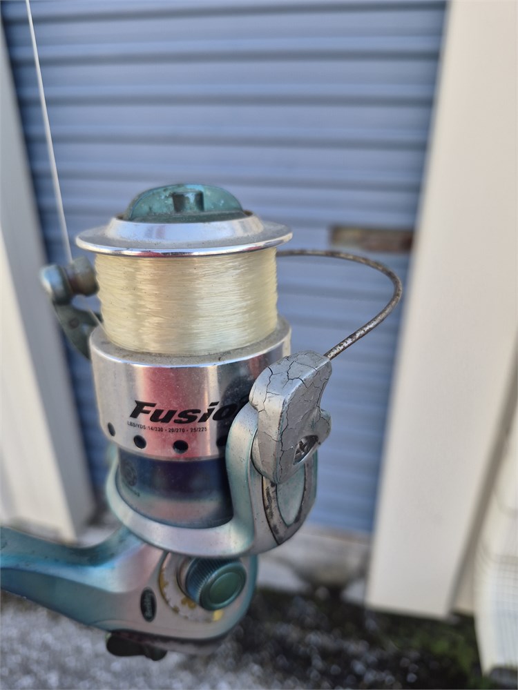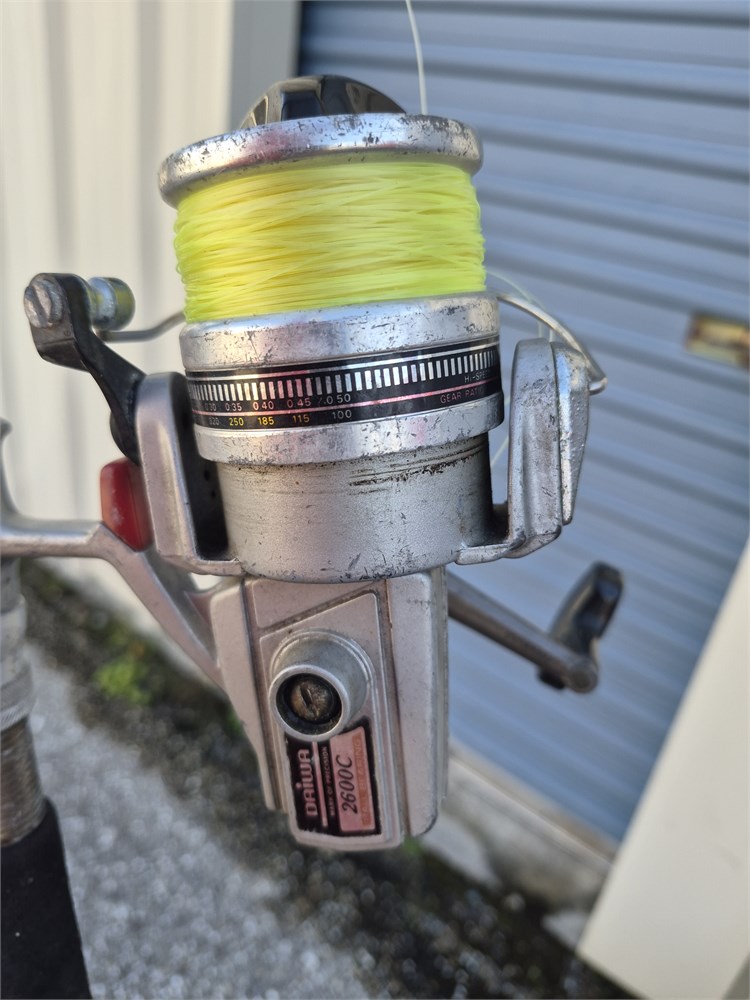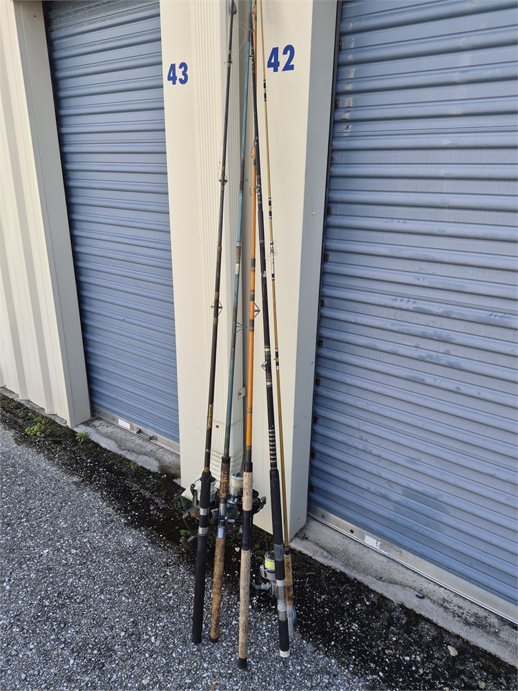 One of five fishing poles all have reels included. These are all used and in used condition.