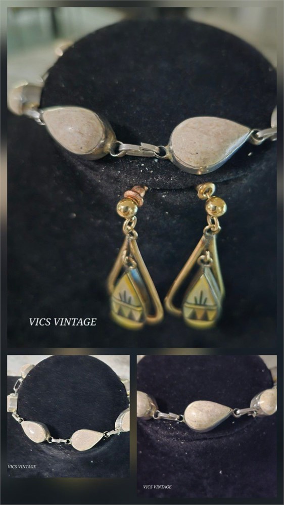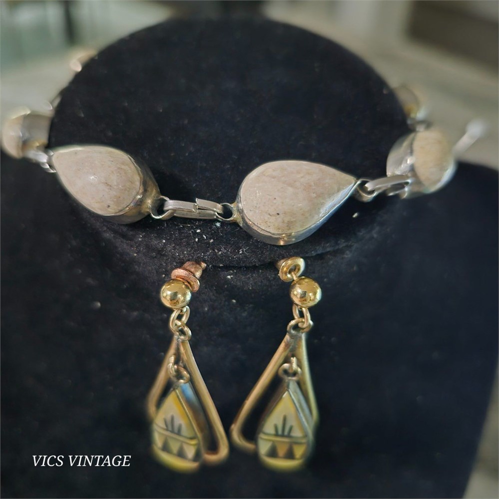 Vintage Hand polished PETOSKEY Stone Bracelet & Earrings [VC]
