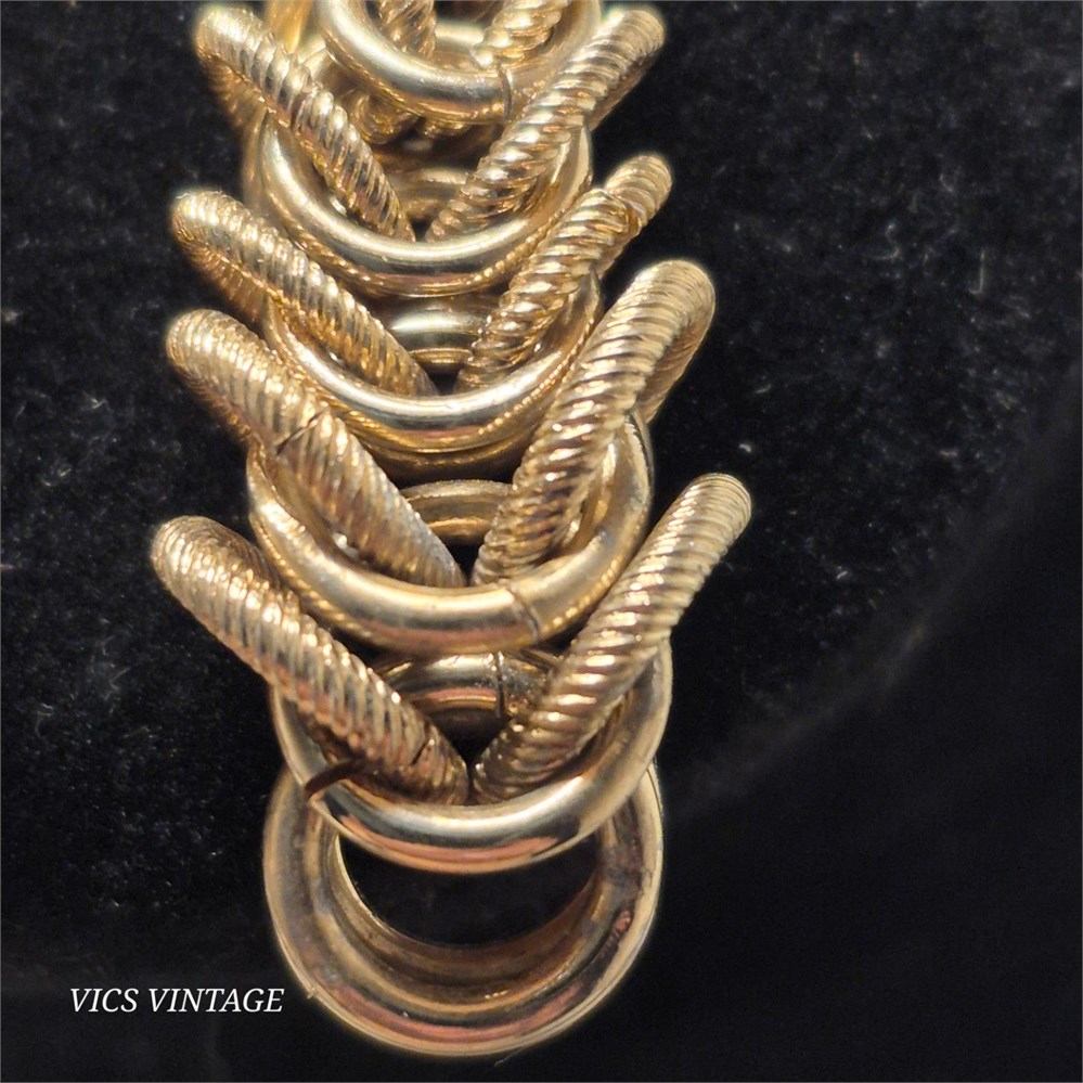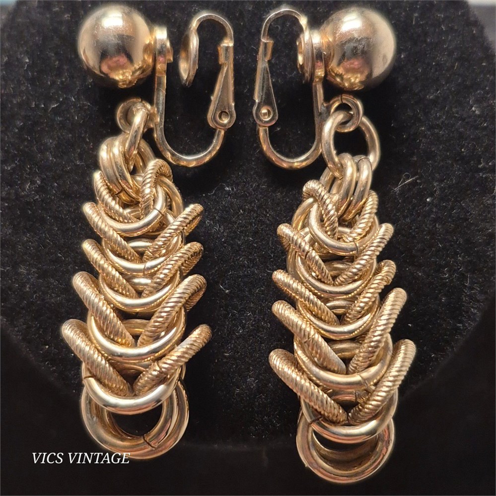 Vintage signed GOLD link Chain clip Earrings chunky classic Byzantine [VC]