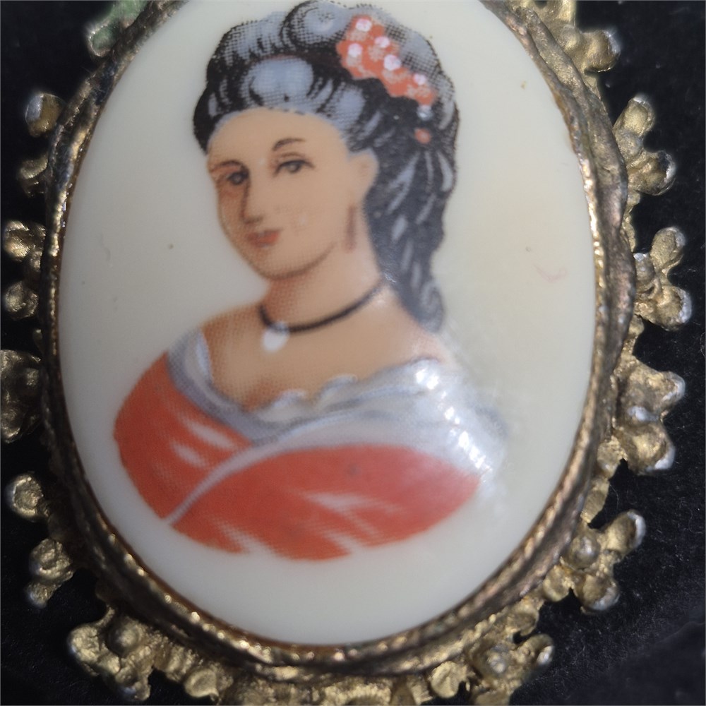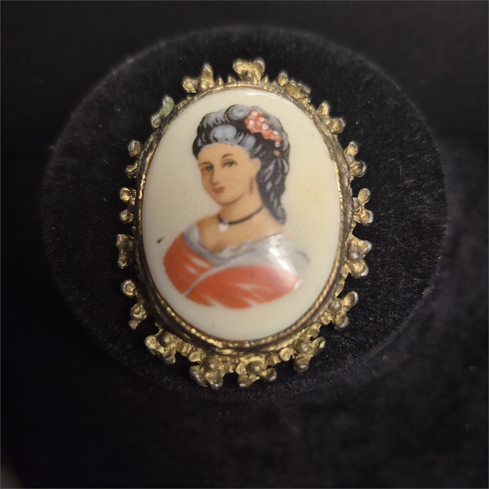 Vintage Porcelain Glass Cabochon Brooch [VC]