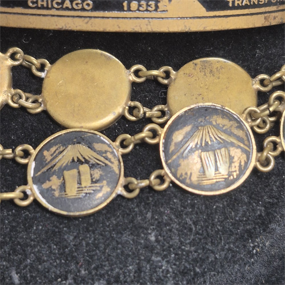 Vintage Chicago World's Fair Copper CUFF  & coord. Bracelet