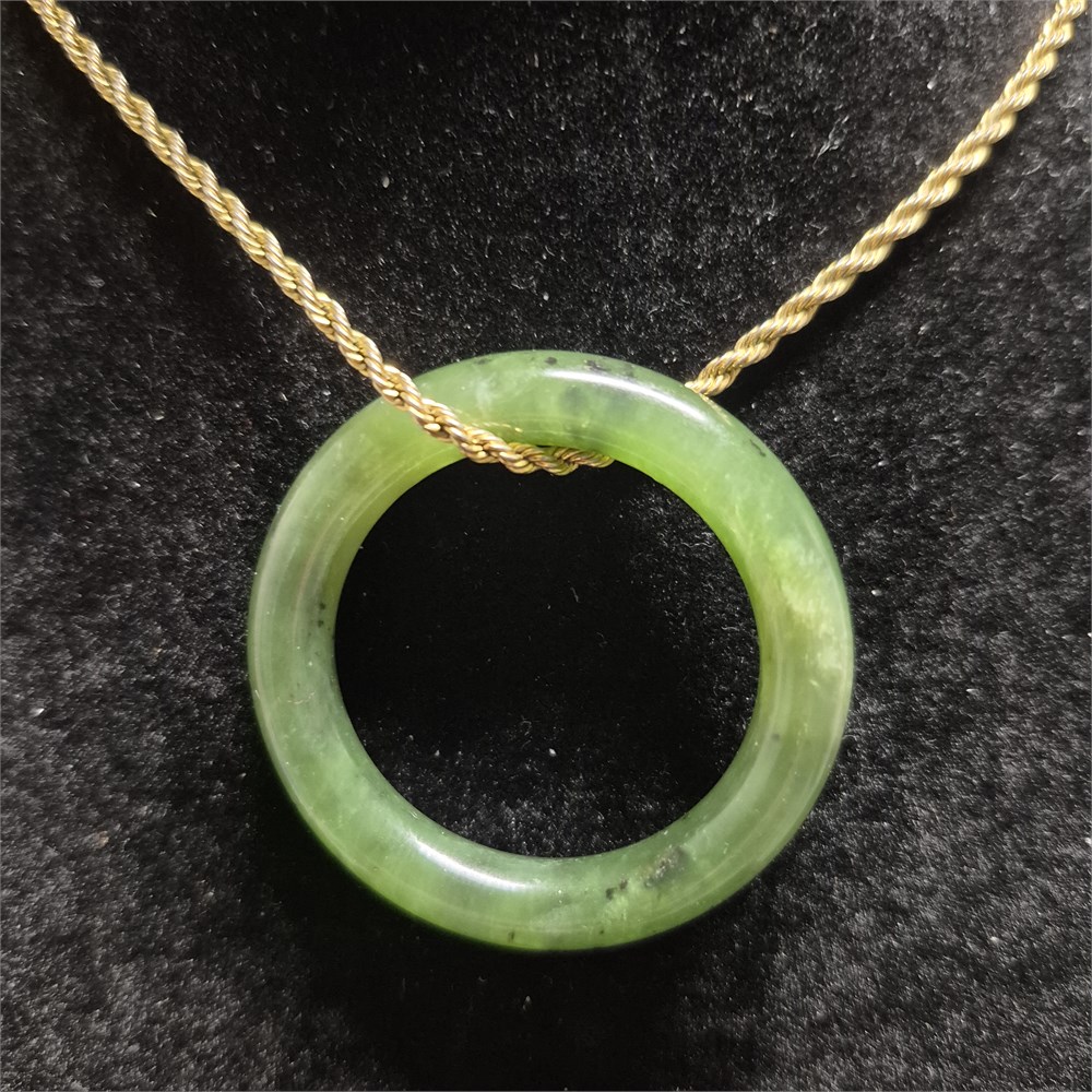 > Jade 2" circle on Gold tone chain w/ lobster clasp.
