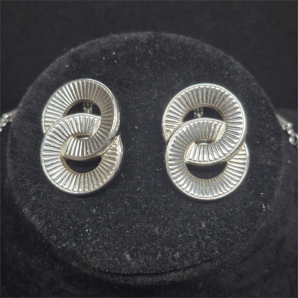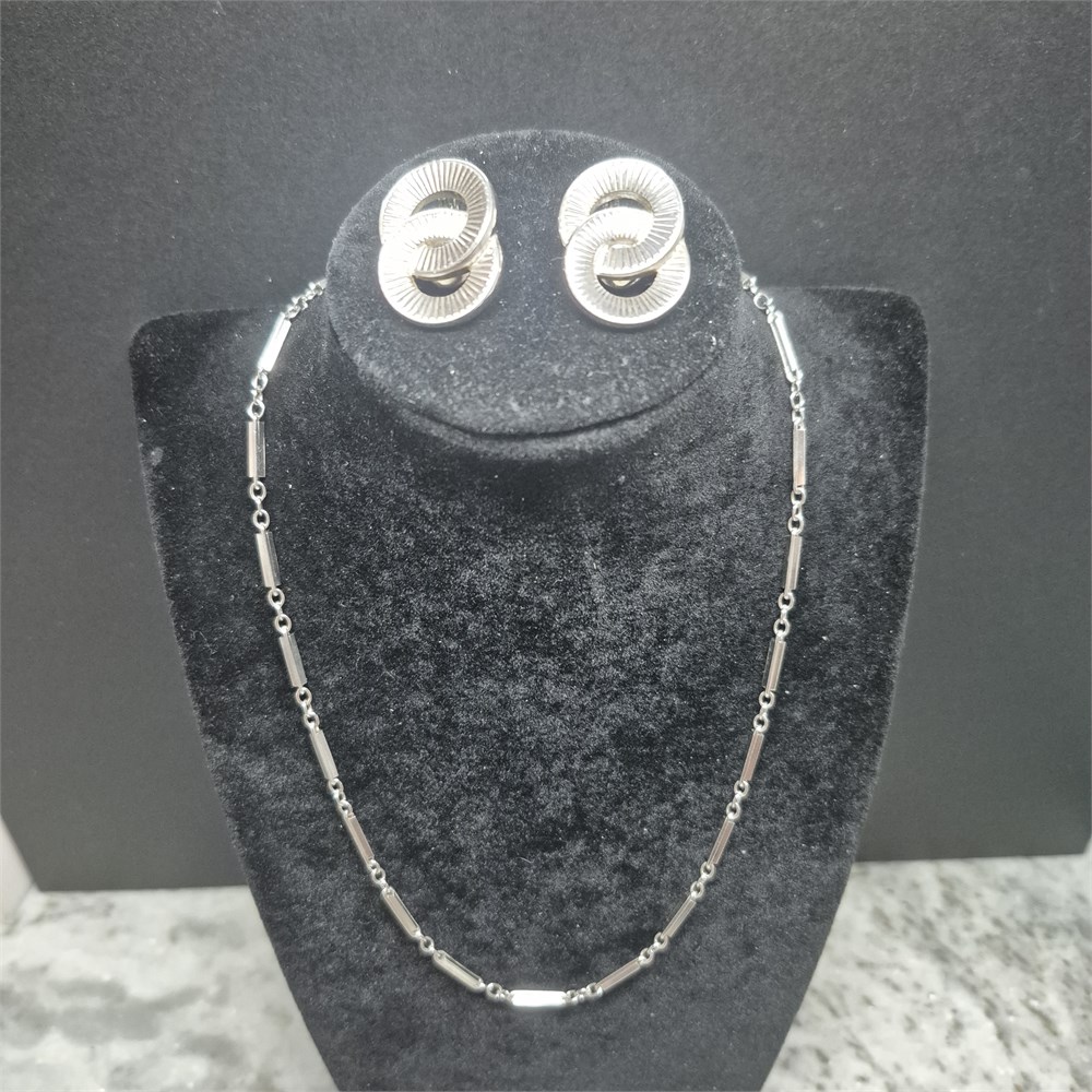 Sterling Silver vintage Bar & Chain Necklace & Monet earrings [VC]