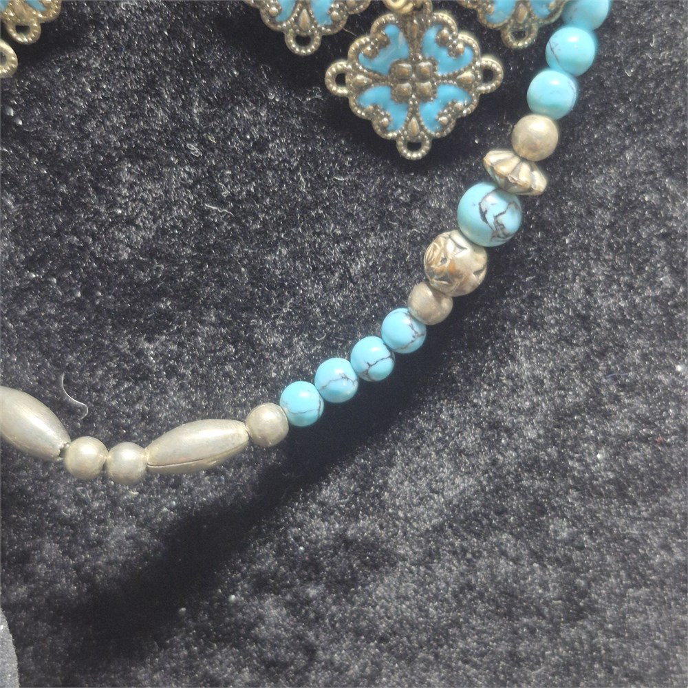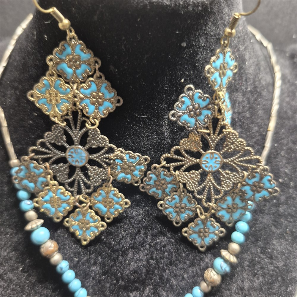 > earrings are turquoise and filligree