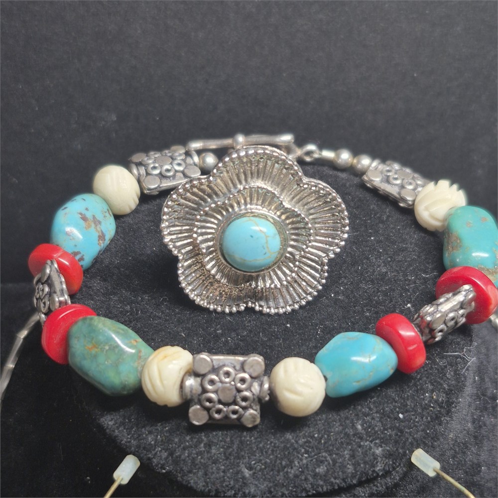 American Indian Jewelry Set ~ Necklace/Bracelet/Earrrings / Ring