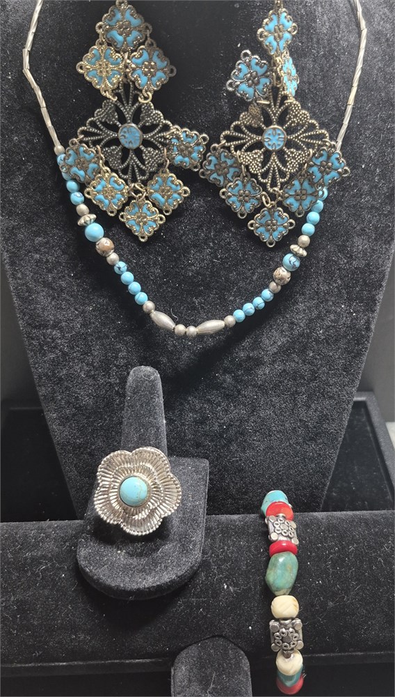 American Indian Jewelry Set ~ Necklace/Bracelet/Earrrings / Ring [VC]