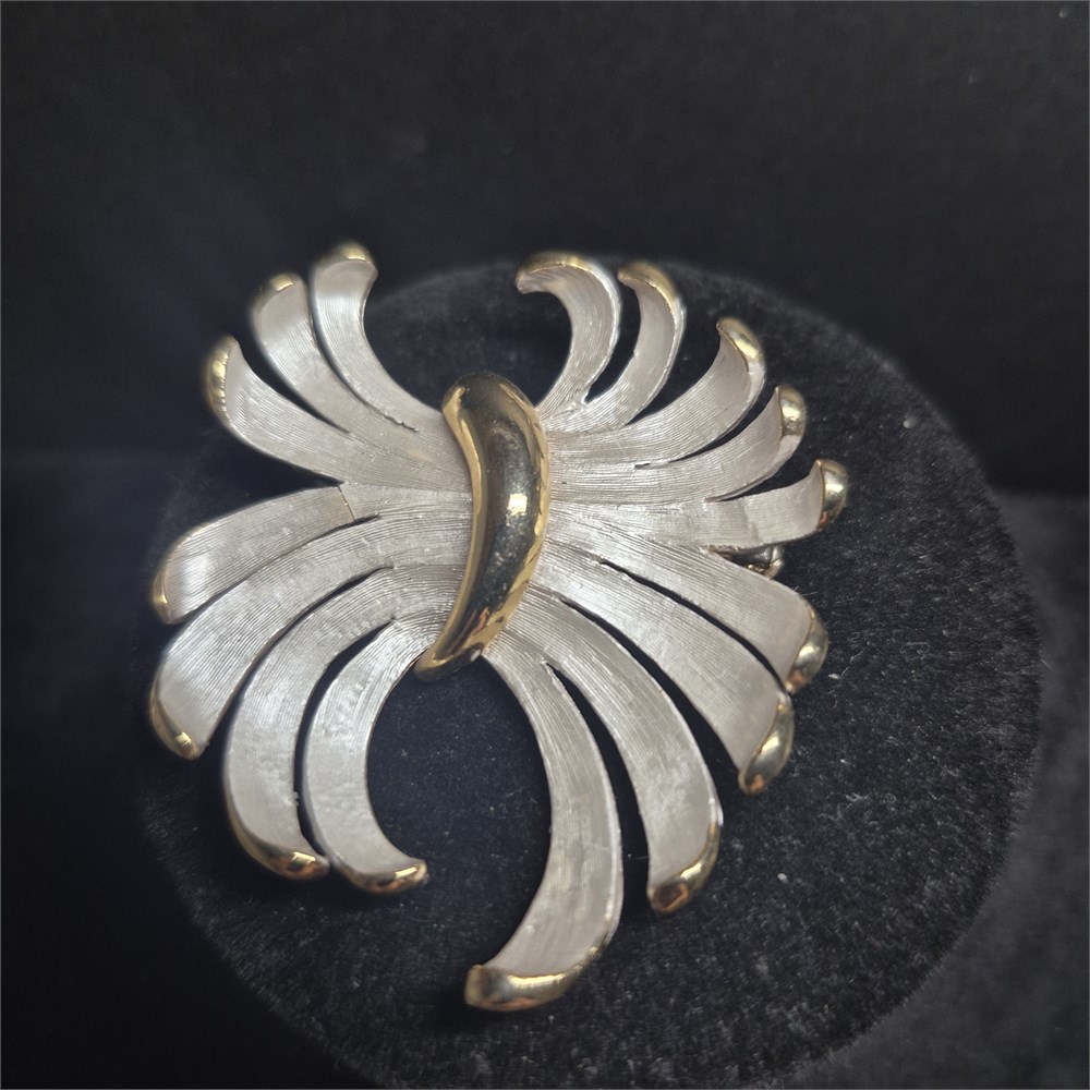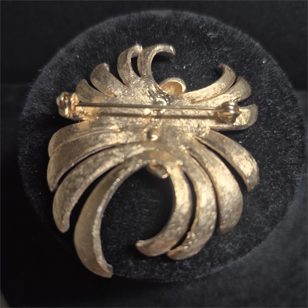 Vintage white brushed gold tone swirl pin brooch anemone