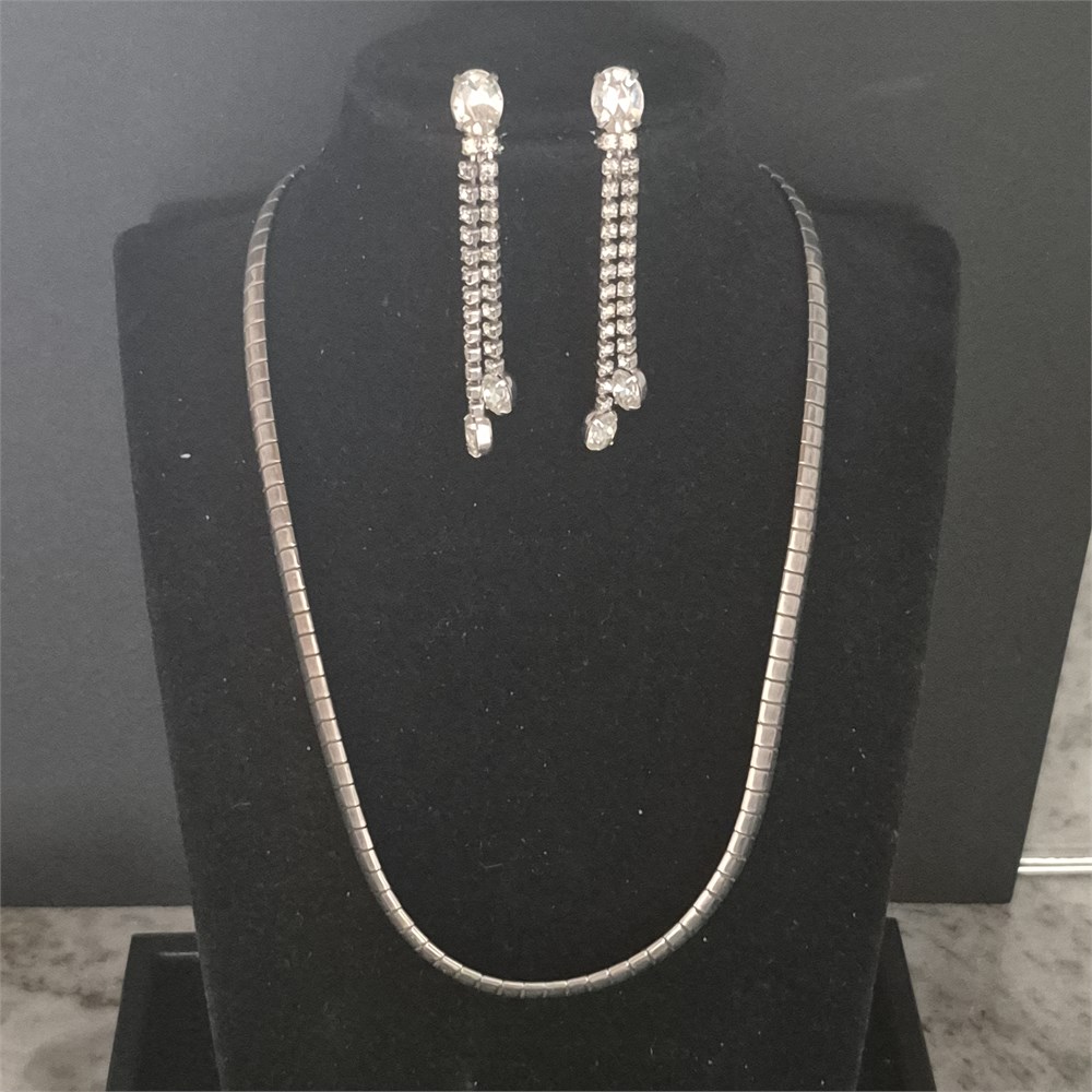 Vtg. Snake silver Necklace w/ WEISS dangle Earrings
