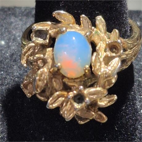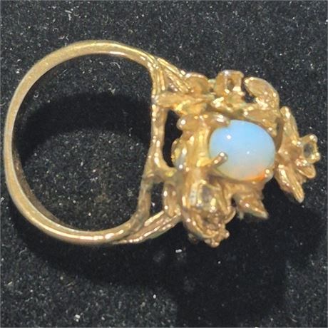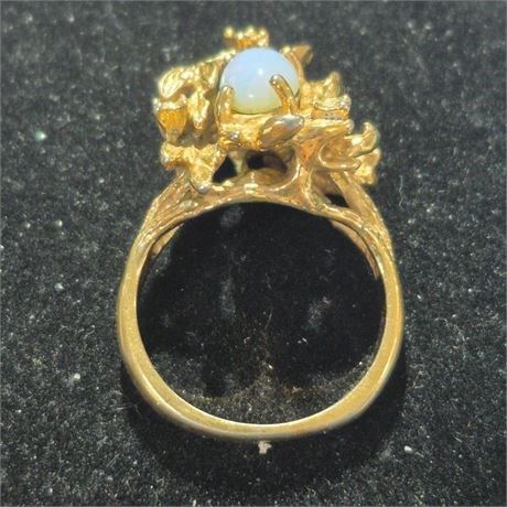 > Opal center stone, gold tone setting