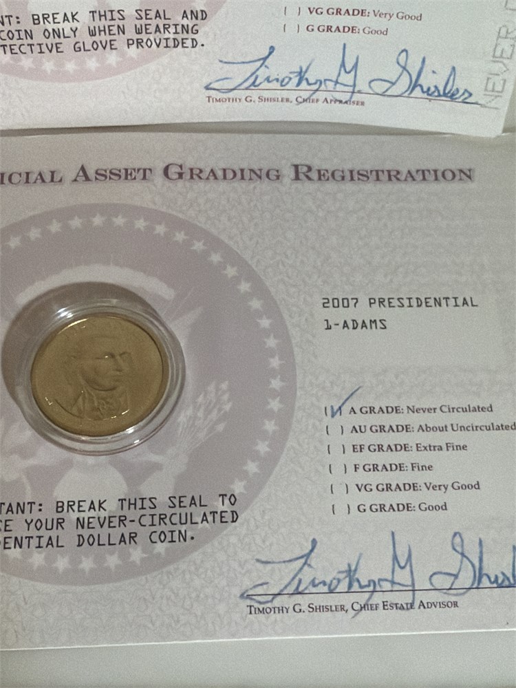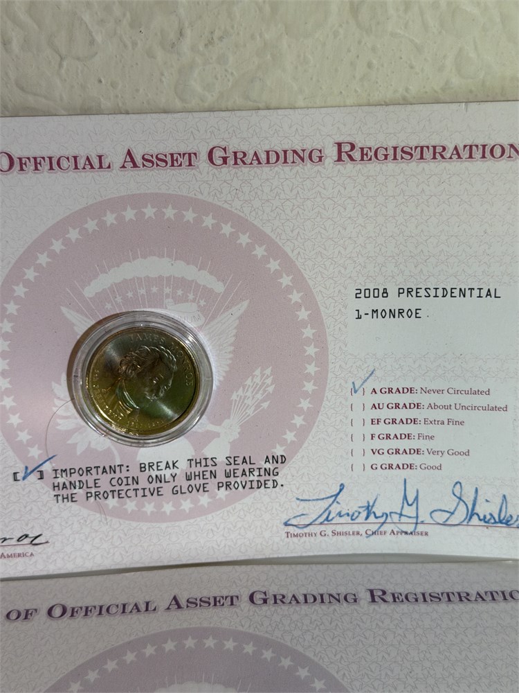 2008 presidential Monroe one dollar, 2007 one dollar Adams And 2011 US grant Denver mint two coins
