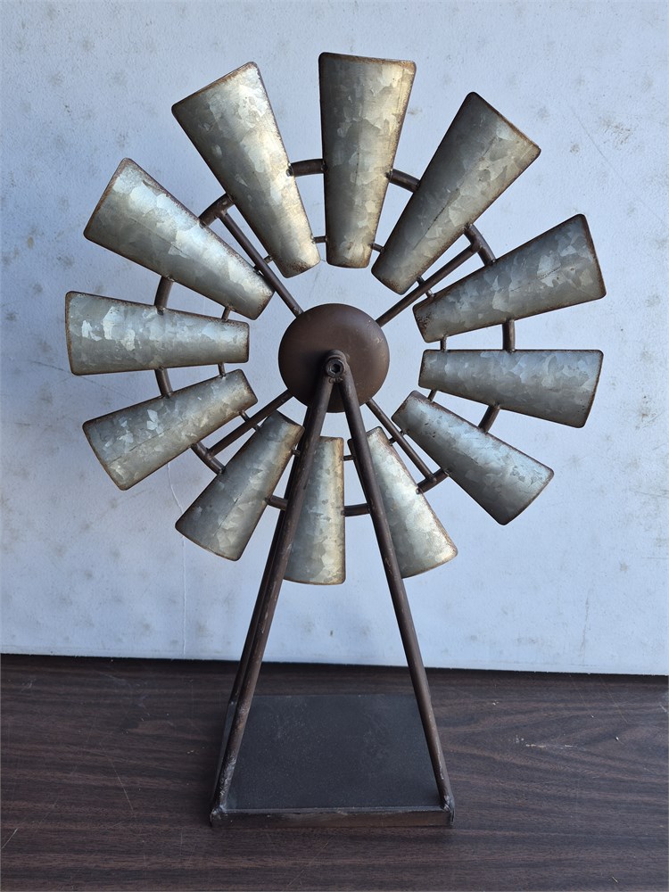 21" Metal Windmill. Items is 13" wide at base. Works good.
