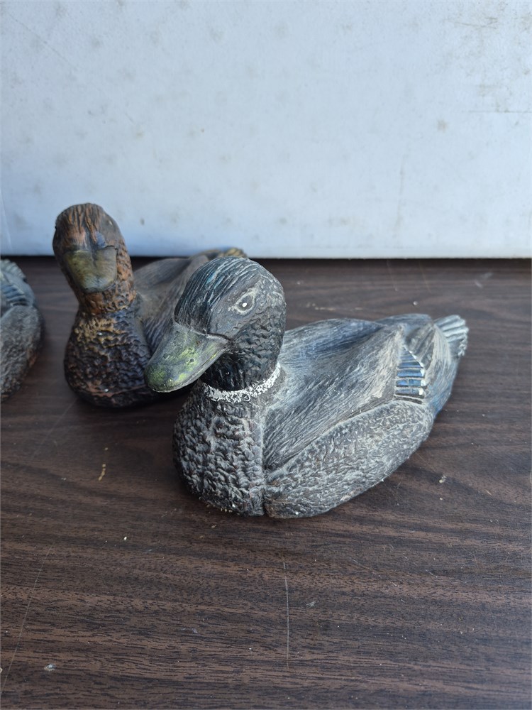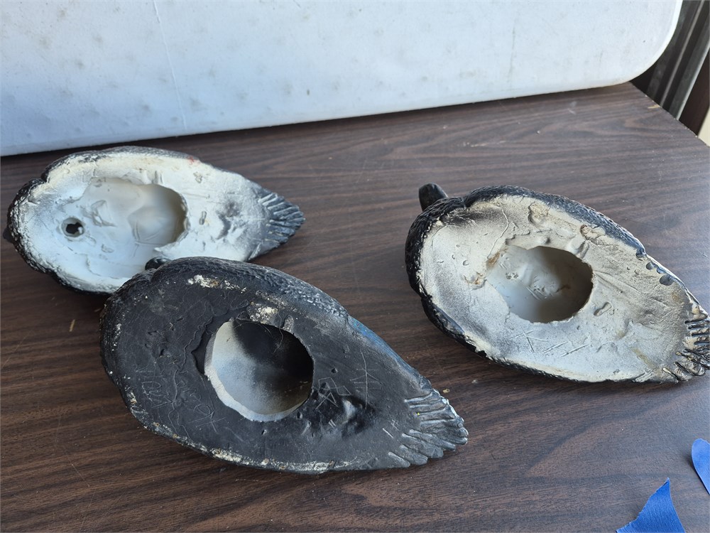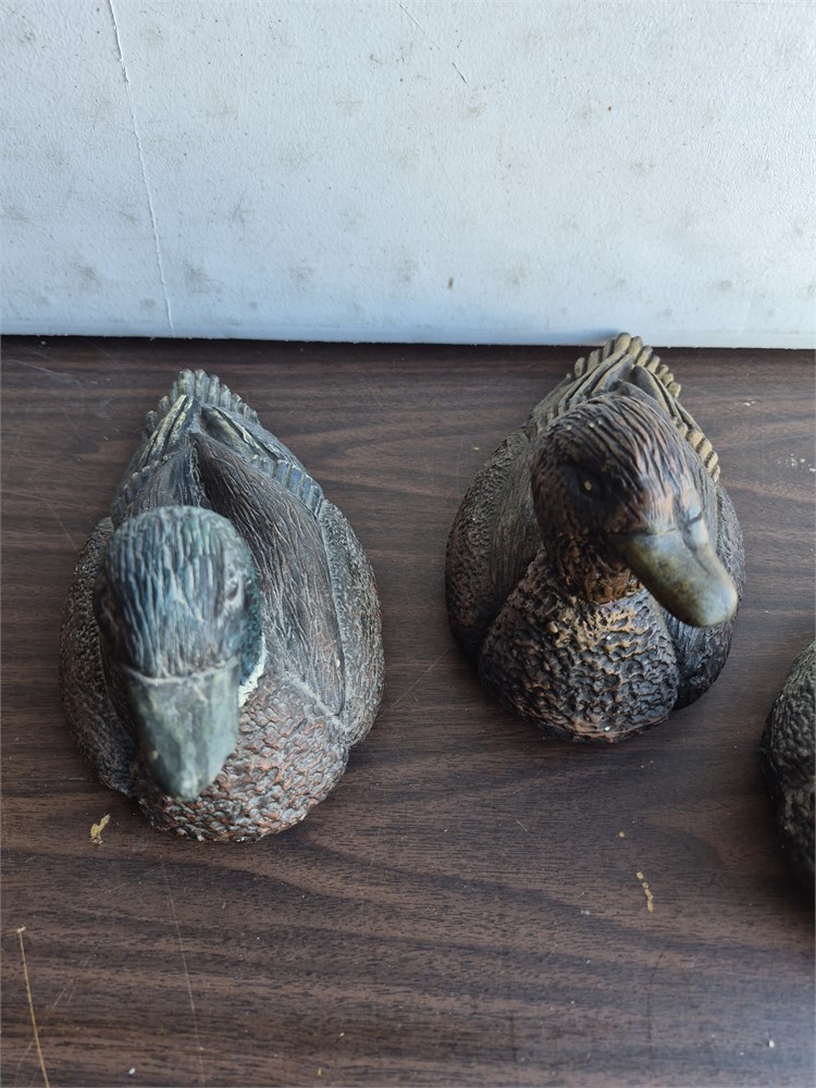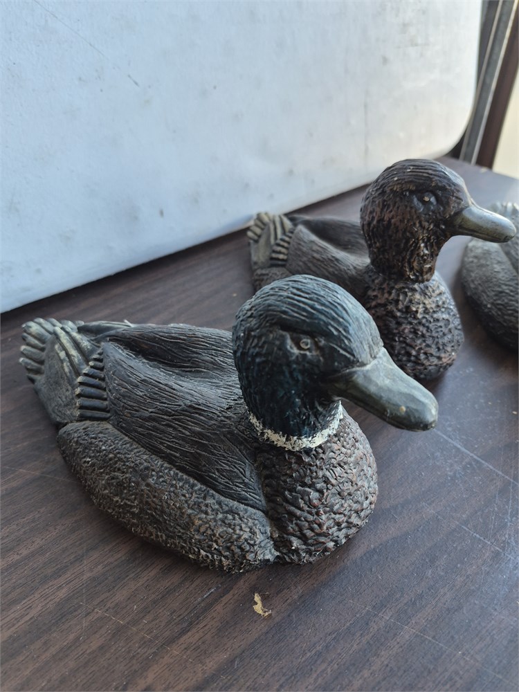Lot of Three plaster Ducks. Each measures about 10" long and is 5" to top of the head.