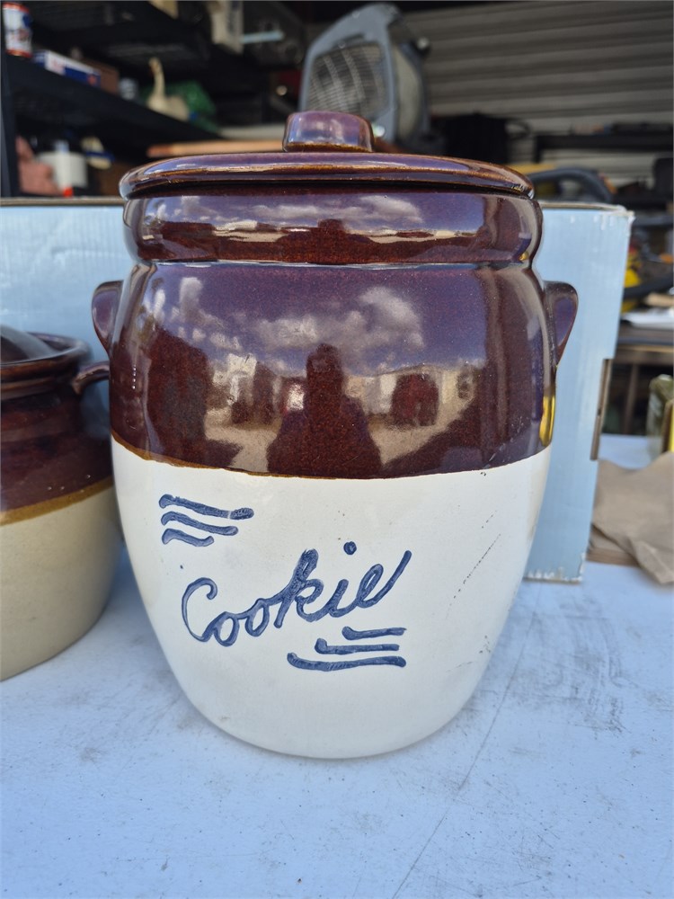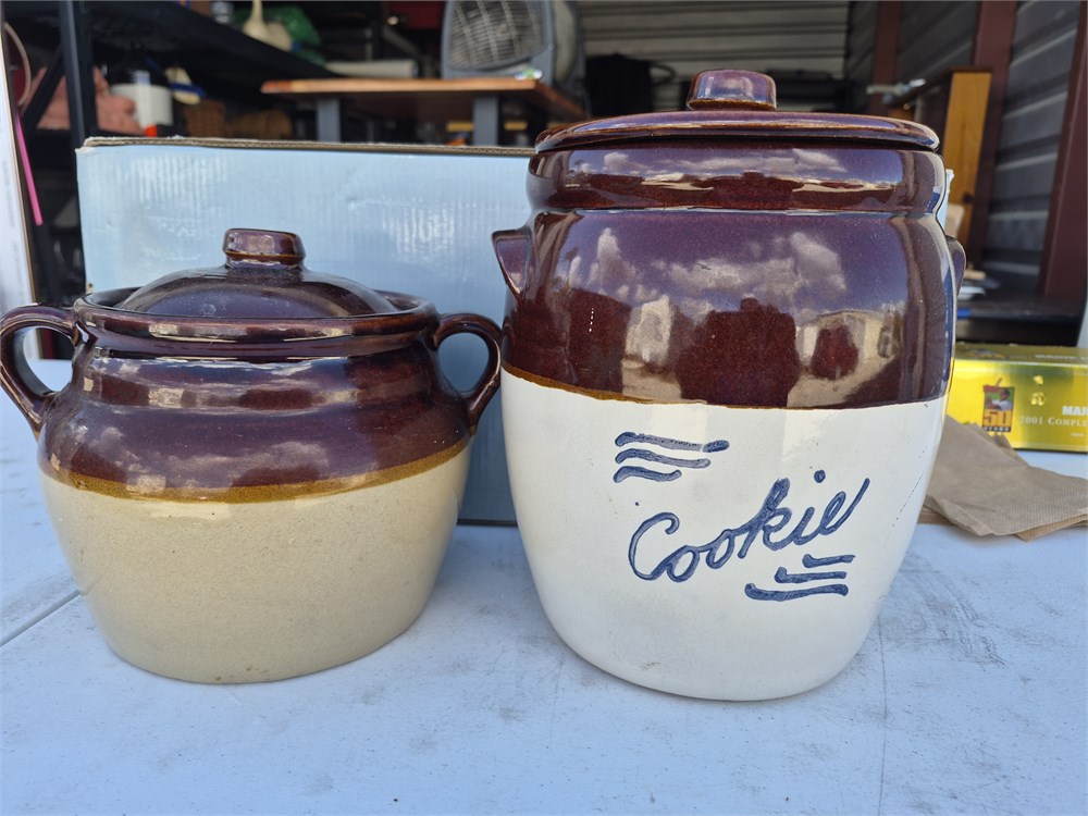 Pair of Stoneware Jars. Measures about 9" tall and smaller jar is about 7".