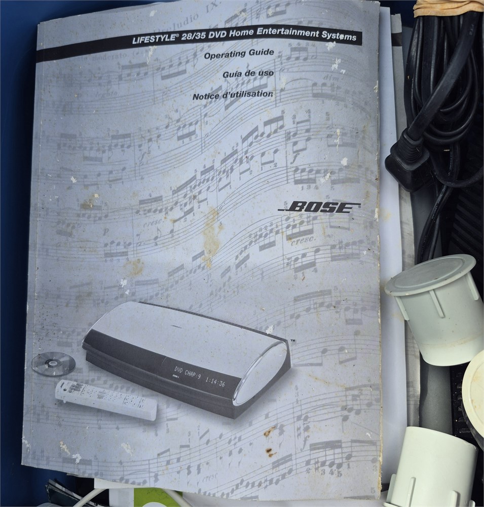 DVD player, electrical, 6 speakers, hardware,instruction manuals.