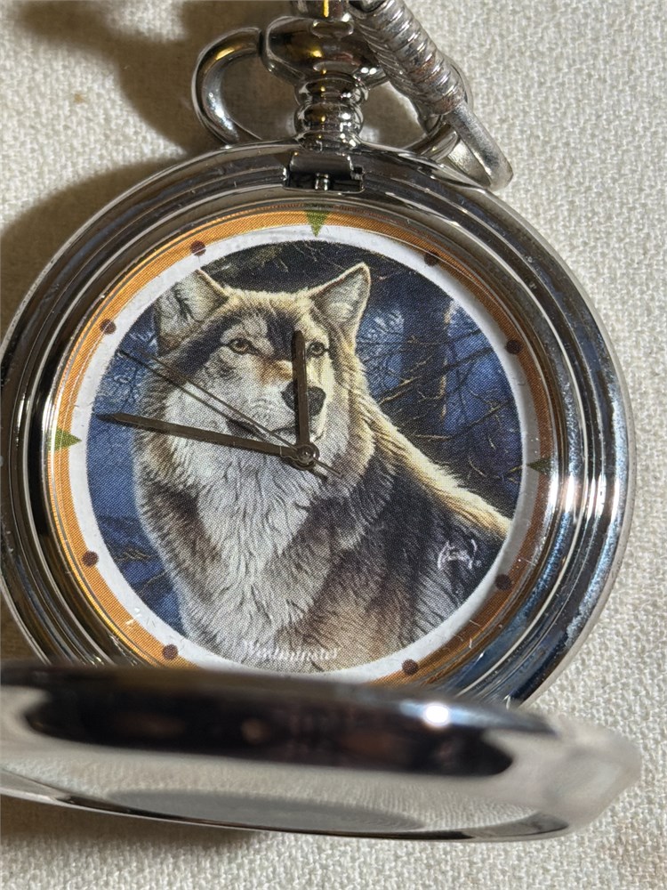Westminster Wildlife Series Wolf Pocket Watch & Chain (L)