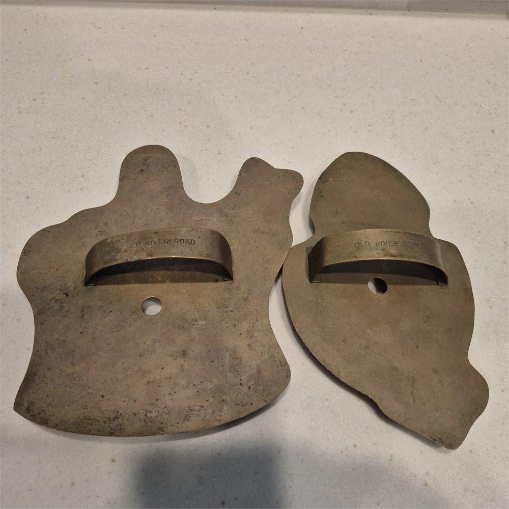 Pair of Copper COOKIE MOLDS ~ marked Old River Road [vc]