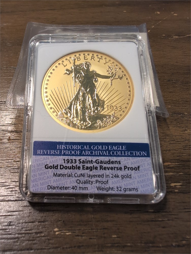 This is a beautiful 32 g 1933 gold double eagle reserve proof coin. It is a limited edition from the American  mint.