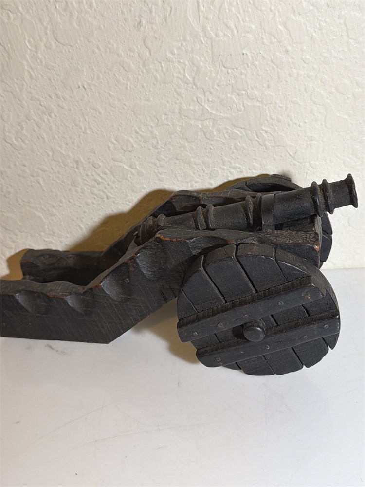 Wood & Cast Iron Cannon w/ Base Stand Primitive Vintage(L)