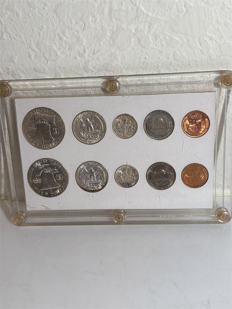 1957 Philadelphia/Denver mint set Two Quarters, Two 50 Cent piece two dimes two nickels to pennies  silver