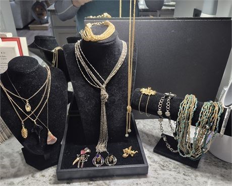 Vintage lot of Gold tone & silver tone Jewelry ~ 13 pcs