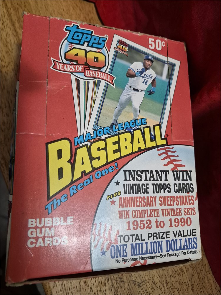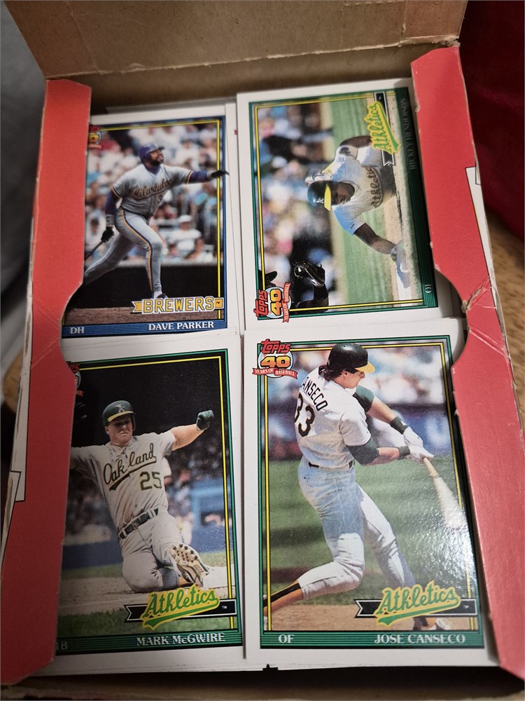 Box of 1991 Topps Baseball Cards. All packs are opened and in Box. Cards are in very good condition. There are around 500 cards in Box.