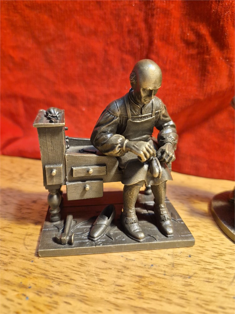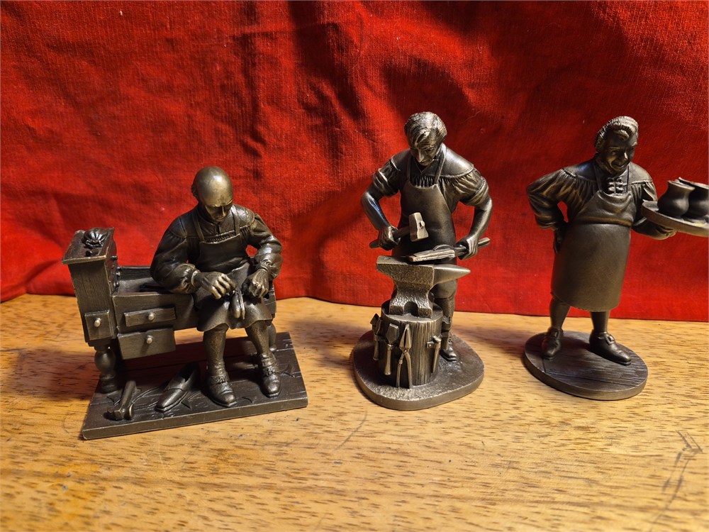 Lio of 3 Franklin Mint Pewter Early Americana Figures. Includesb the innkeeper the blacksmith and the shoemaker.