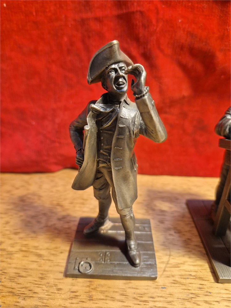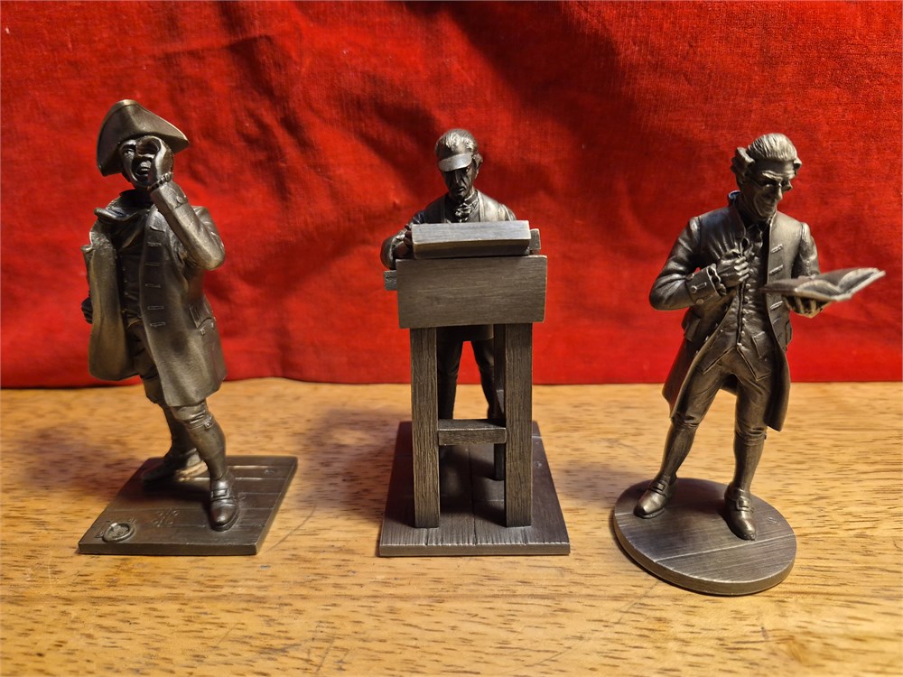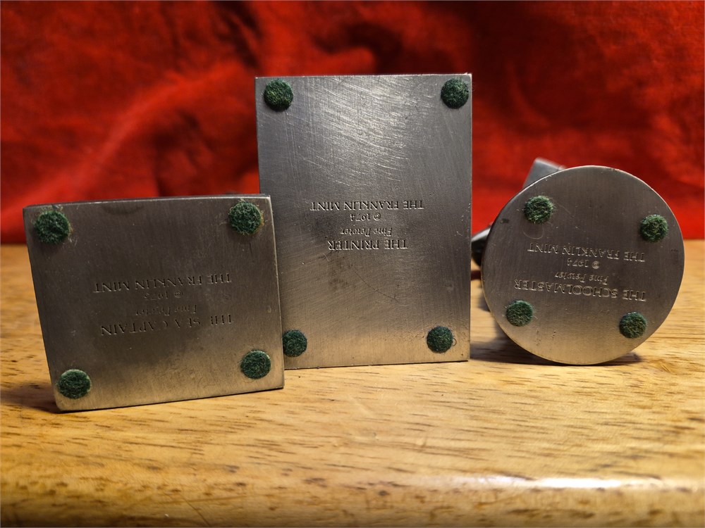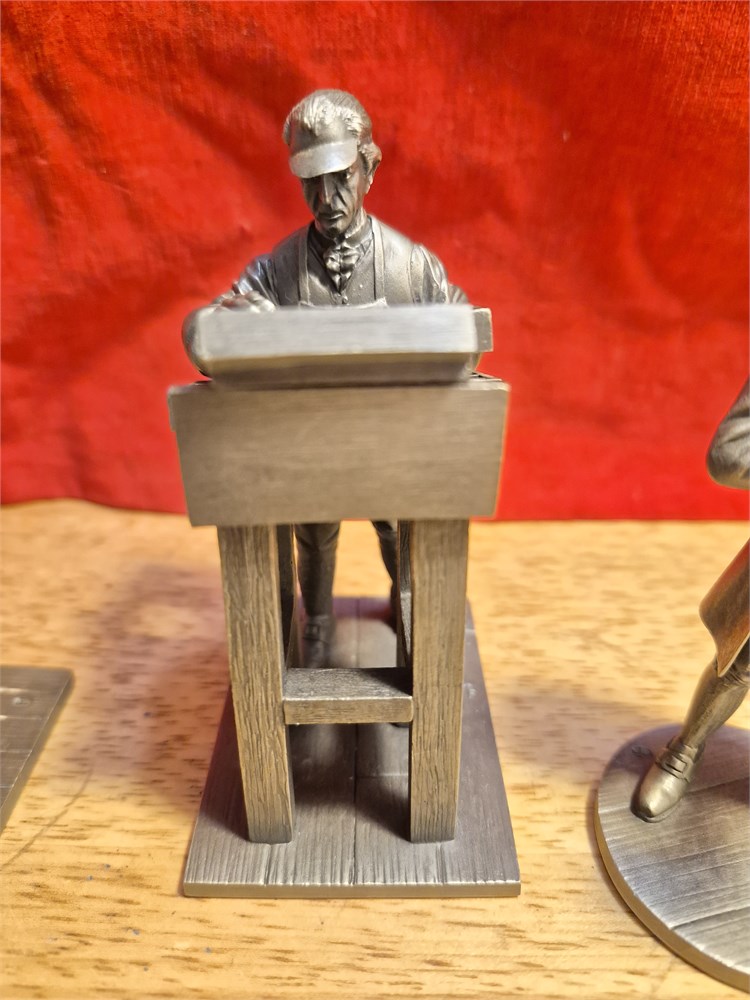 Lot of 3 Franklin Mint Early Americana Pewter Figures. Includes the schoolmaster, the printer and the sea captain.