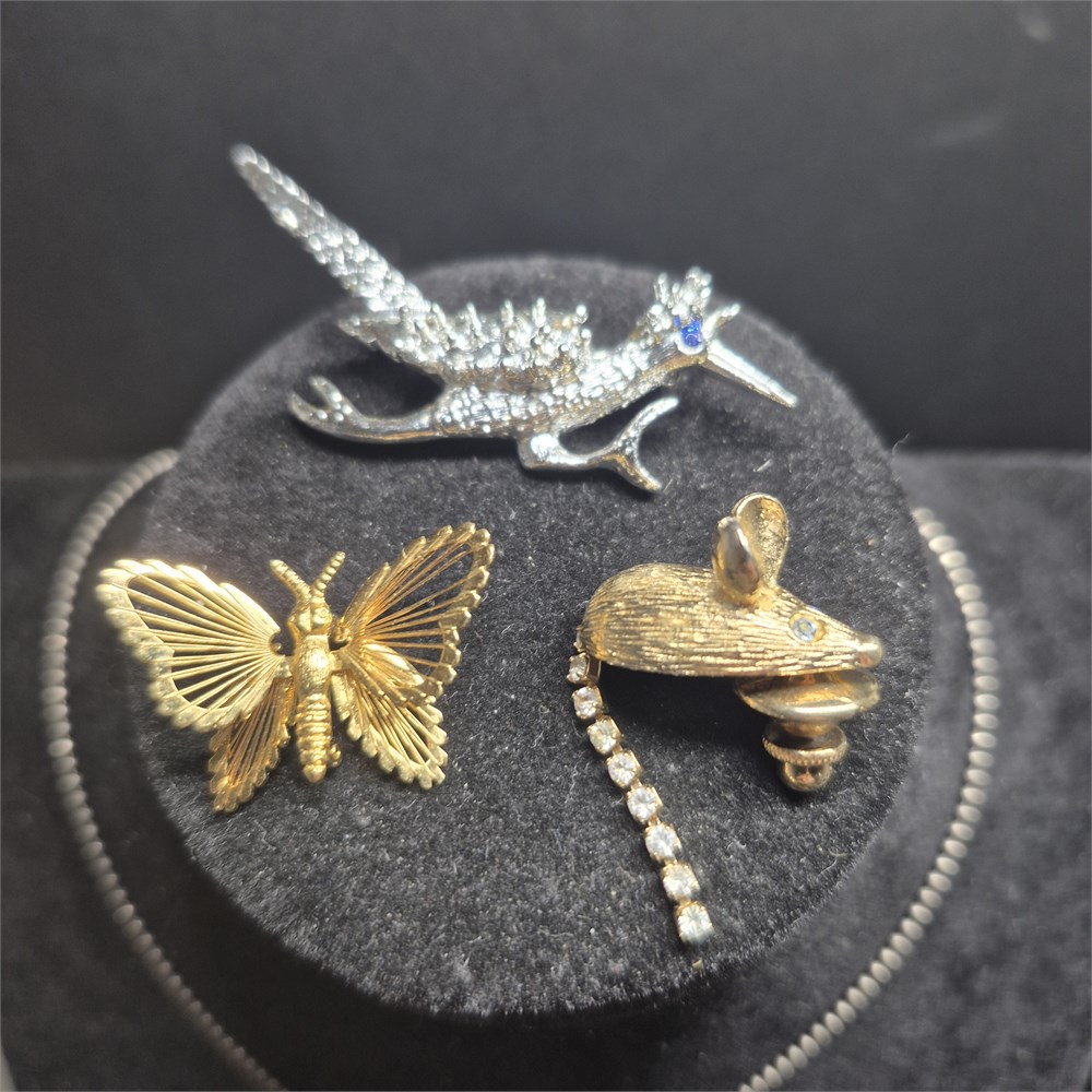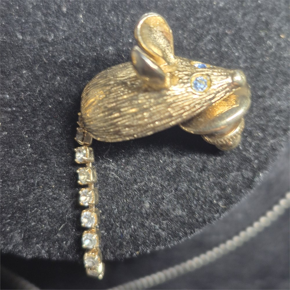 cute MOUSE pin with rhinestone eyes and tail