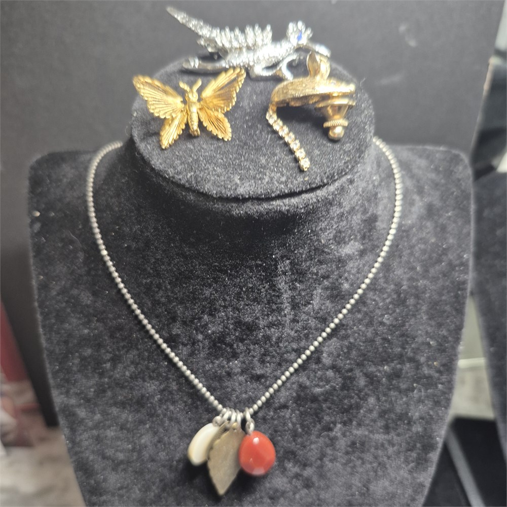 Lot vintage Pins & Lodge/cabin Necklace