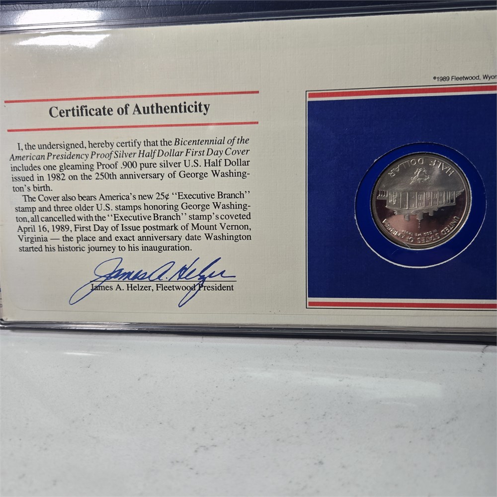 1789-1989 The American Presidency Coin & Stamps First Day of Issue 90% Silver