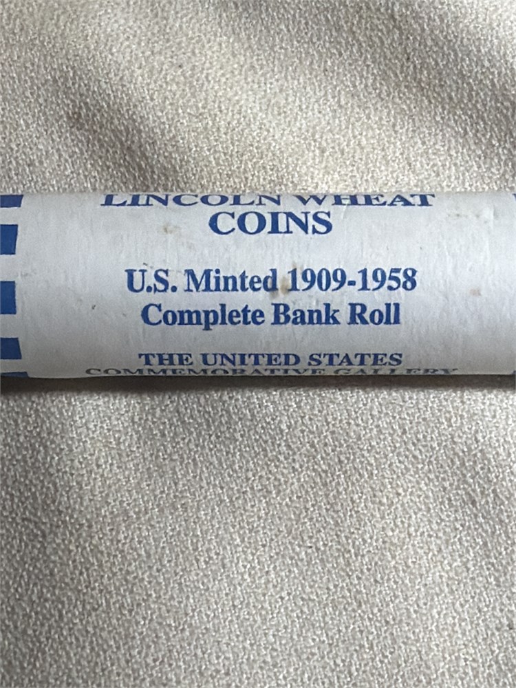 Vintage one roll, wheat pennies, very rare and very nice condition 1954s out  of circulation US mint complete bank row