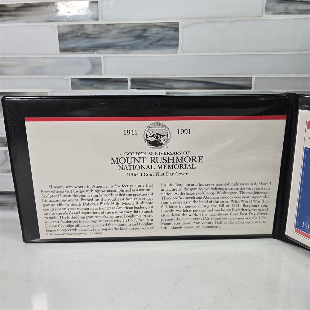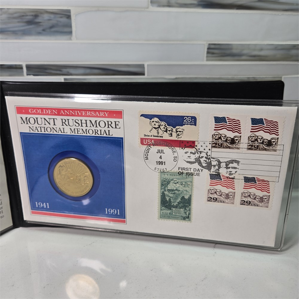 1991 Fleetwood Golden Anniversary of Mount Rushmore National Memorial Coin & Stamps First Day of Issue Cover Set
