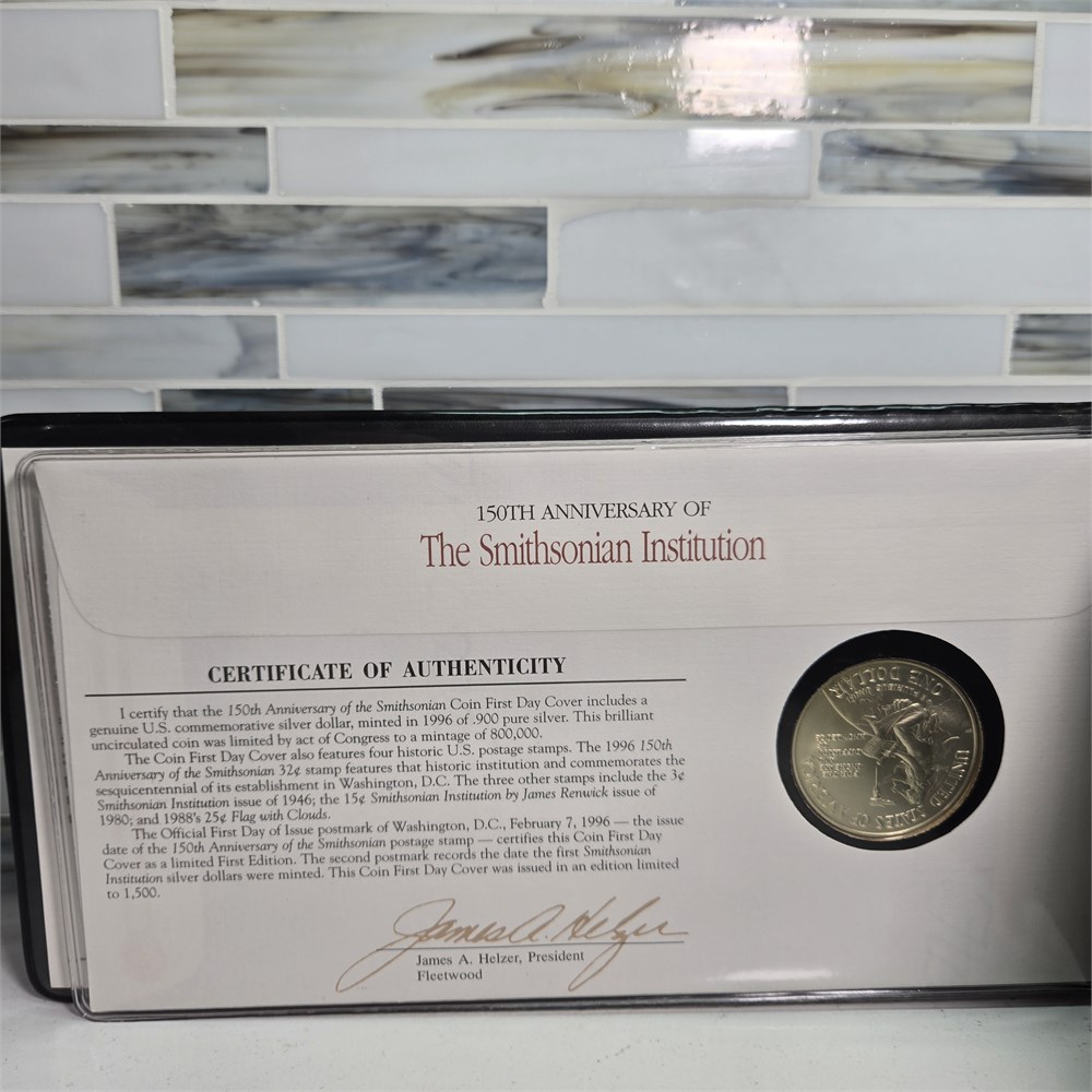 1996 Fleetwood 150th Anniversary of The Smithsonian Institution Coin & Stamps First Day of Issue Cover Set