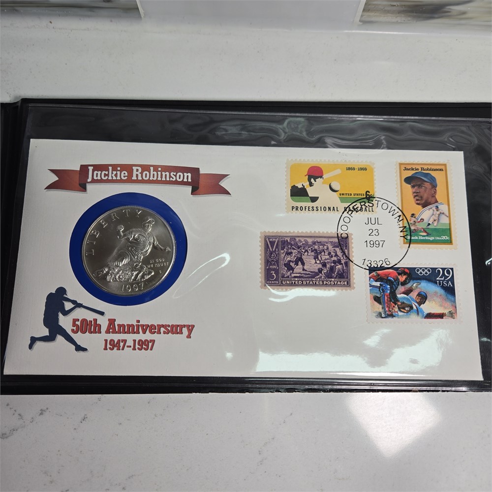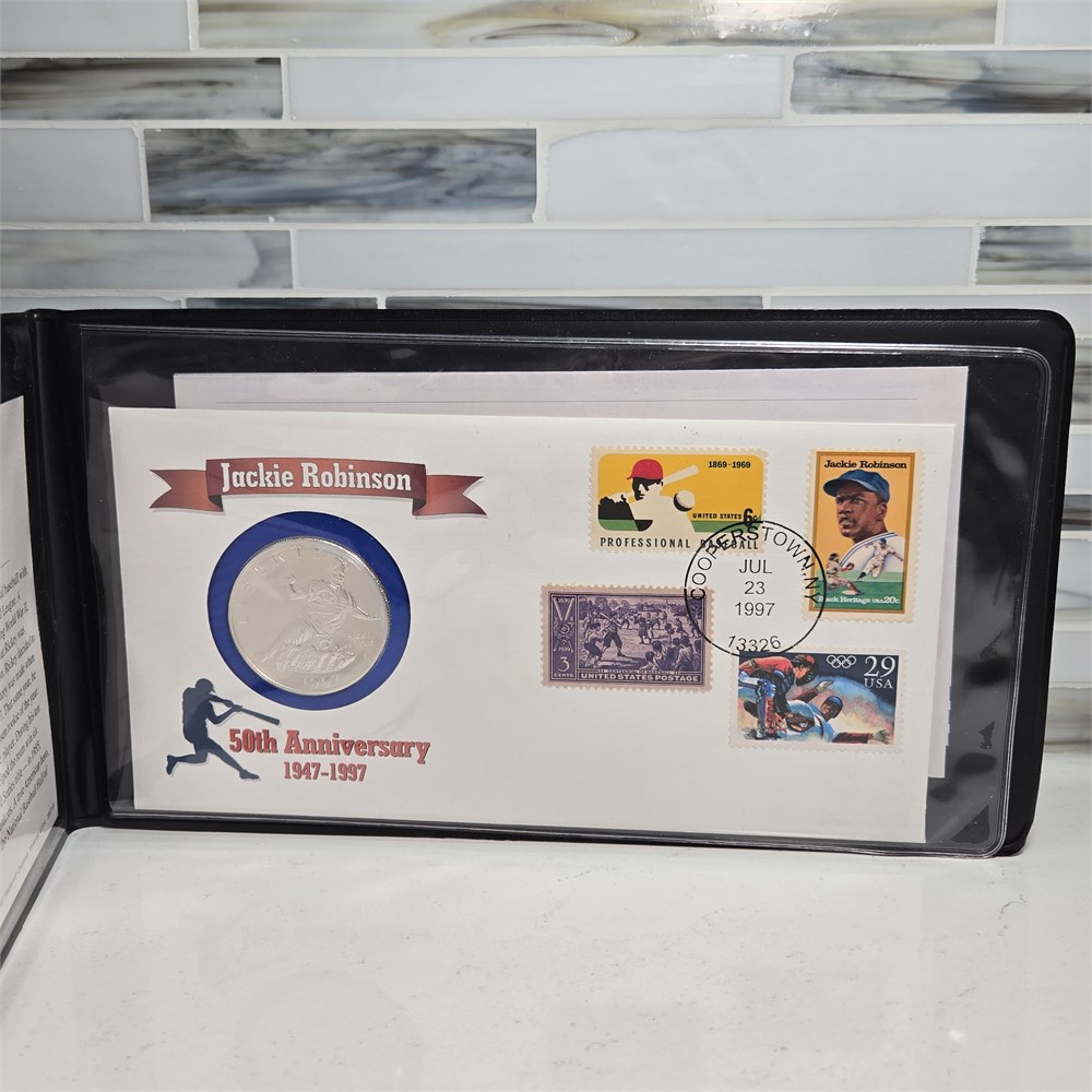 1997 Jackie Robinson 50th Anniversary Coin & Stamps First Day of Issue Cover Set