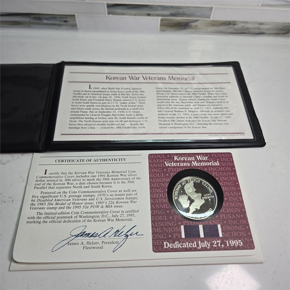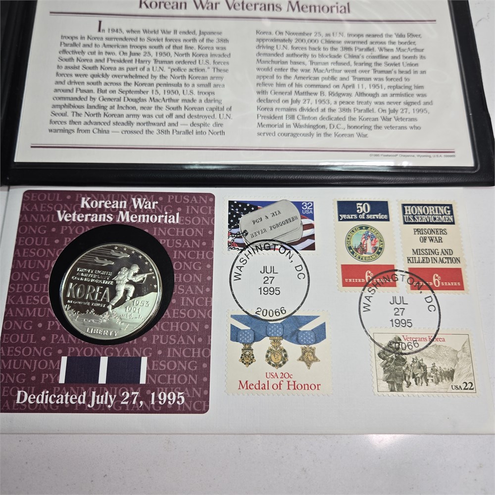 1995 Korean War Veterans Memorial Coin & Stamps First Day of Issue Cover Set