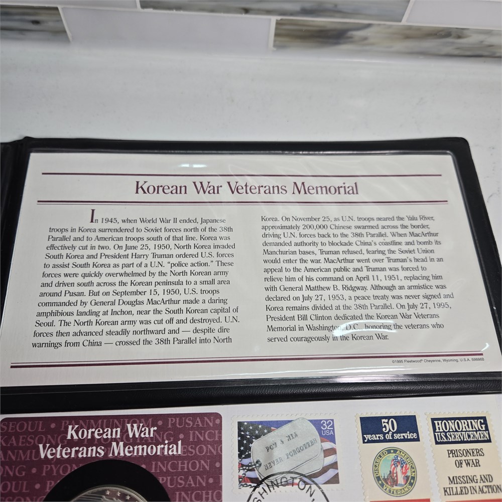 1995 Fleetwood Korean War Veteran Memorial Coin & Stamps First Day of Issue Cover Set