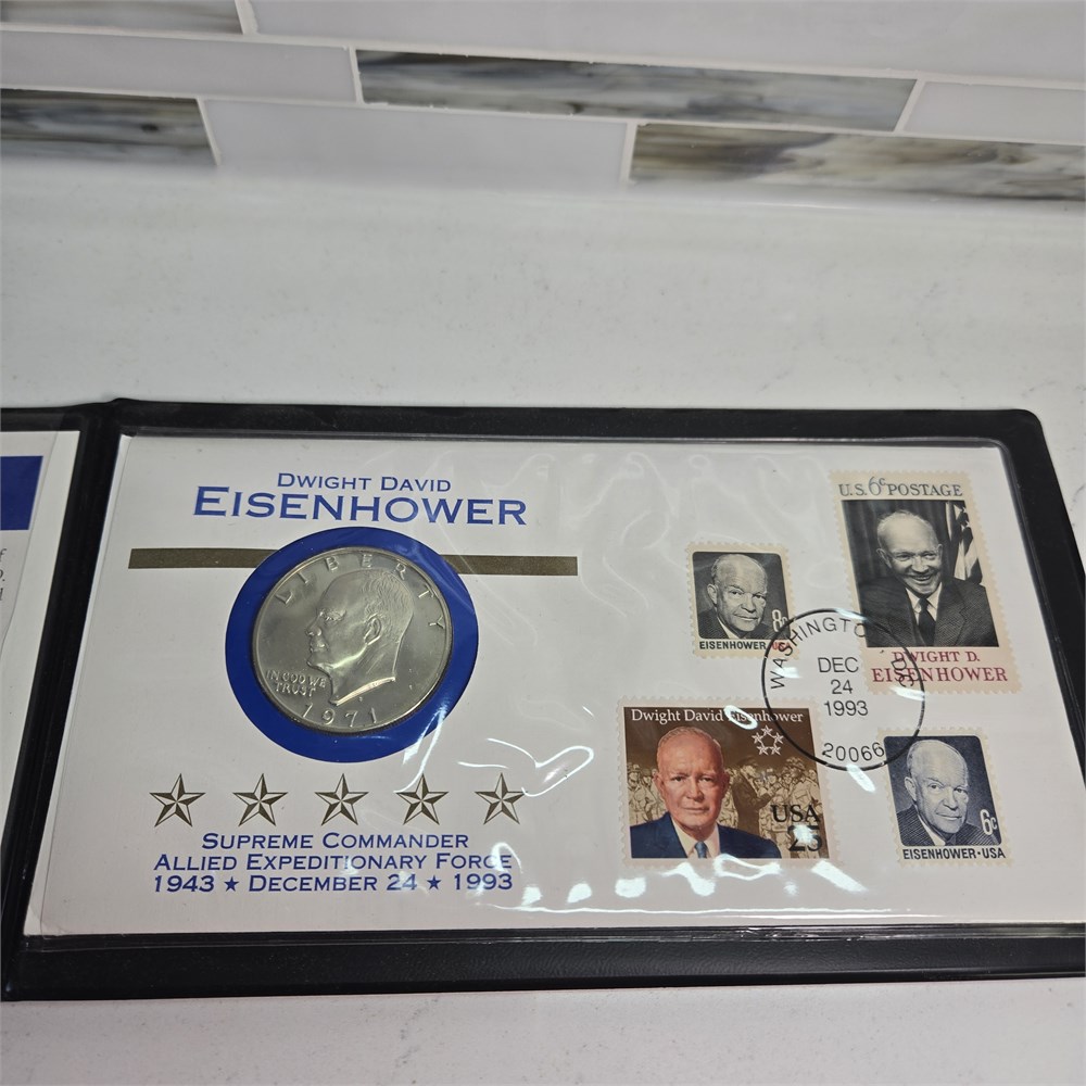 1993 Dwight David Eisenhower Coin & Stamps First Day of Issue Cover Set