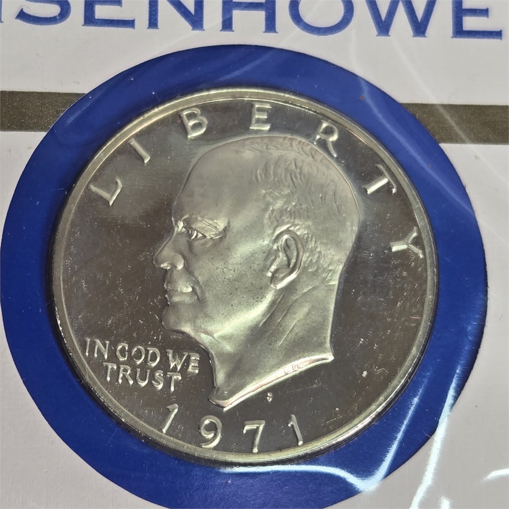 1971 Liberty Dollar 40% Silver coin and 4 Eisenhower stamps