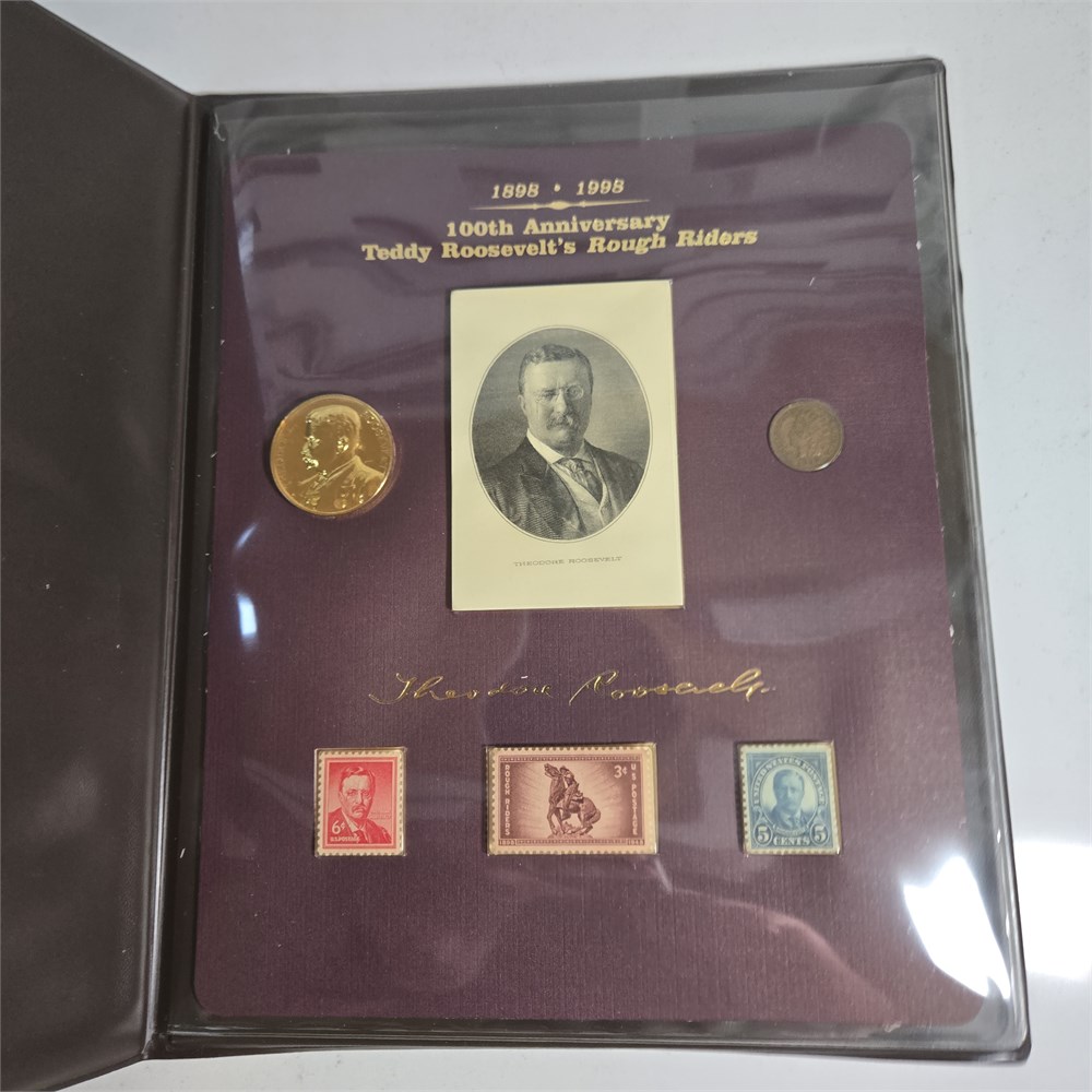 1998 Teddy Roosevelt's Rough Riders Coin & Stamps First Day of Issue Cover Set