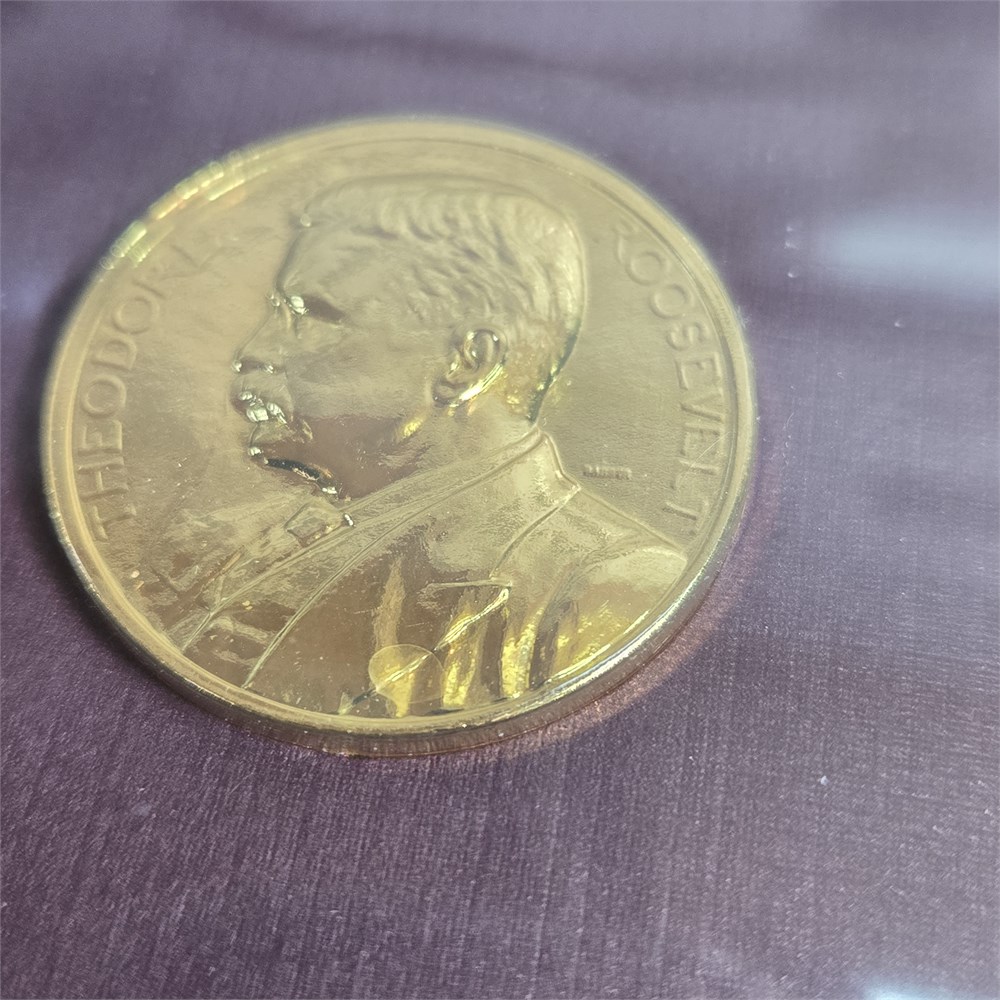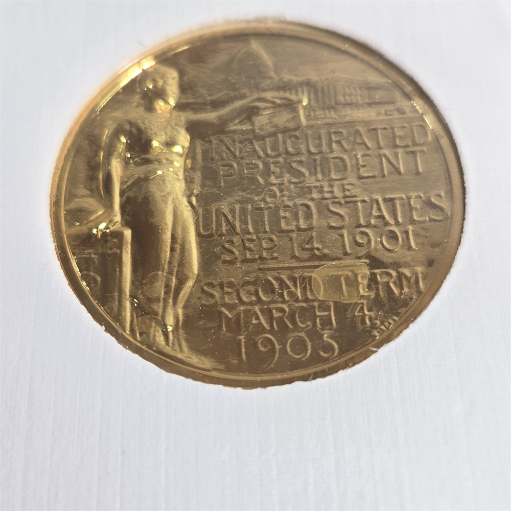 1898 One Cent coin and Commemorative Metal 1/8" thick solid Bronze layered in 24k gold coin and 3 Roosevelt stamps