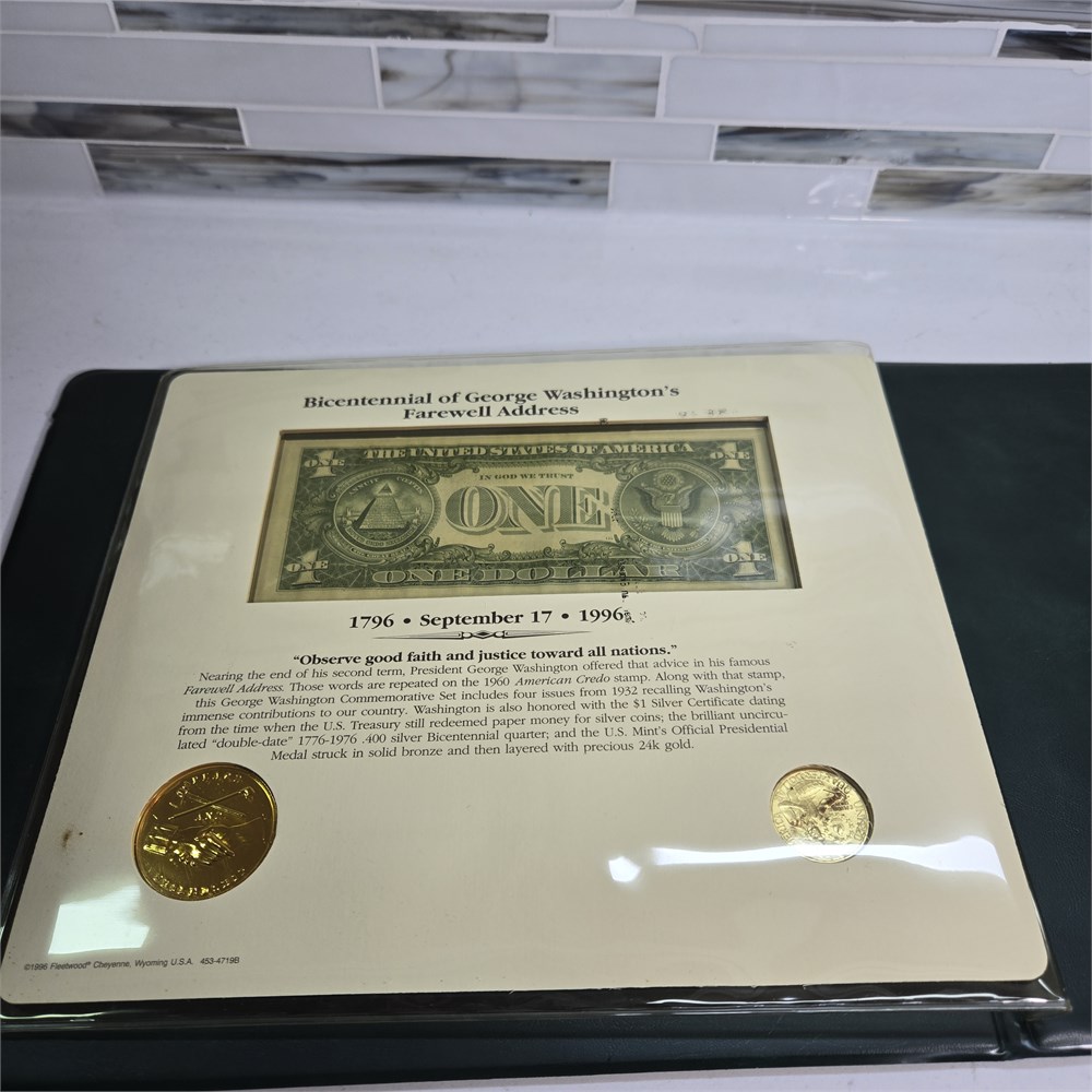1796-1996 Fleetwood Bicentennial of George Washington's Farewell Address Bill, Coins & Stamps First Day of Issue Cover Set