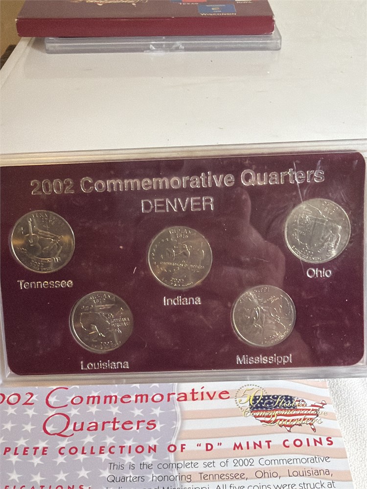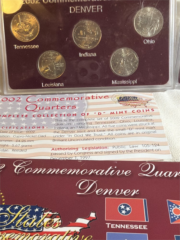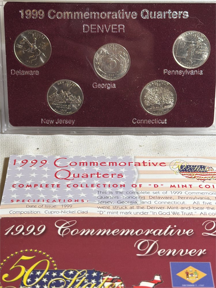 2002/1999   Commemorative Quarters  Denver 50 states Tennessee, Louisiana, Indiana, Ohio, Mississippi, Delaware, New Jersey, Connecticut, Georgia, and Pennsylvania all uncirculated